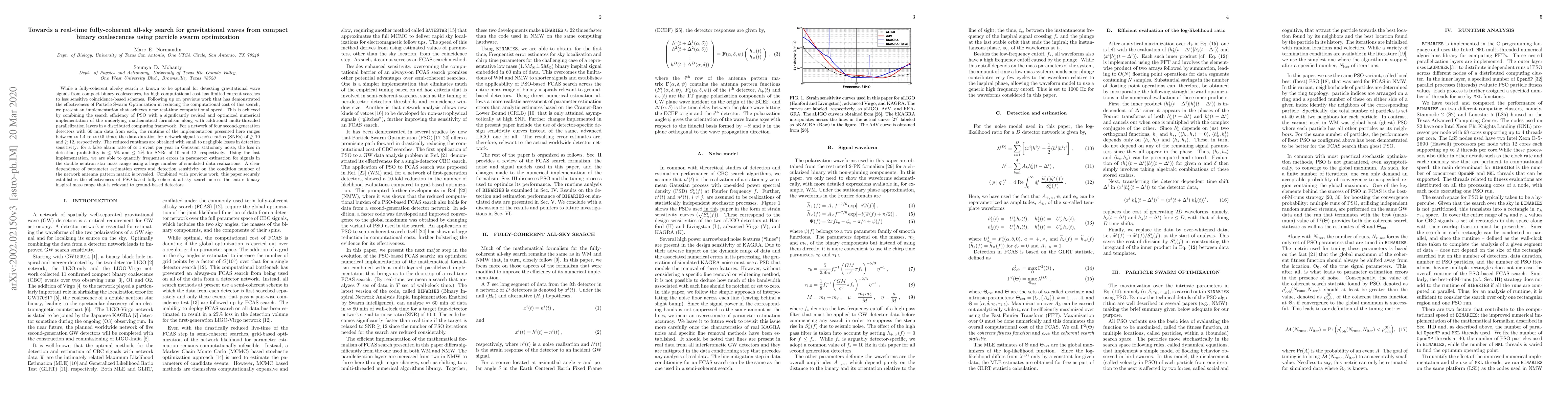Researchers developed a faster method for detecting gravitational waves from compact binary coalescences using particle swarm optimization, achieving near real-time computation speeds while maintaining detection sensitivity.