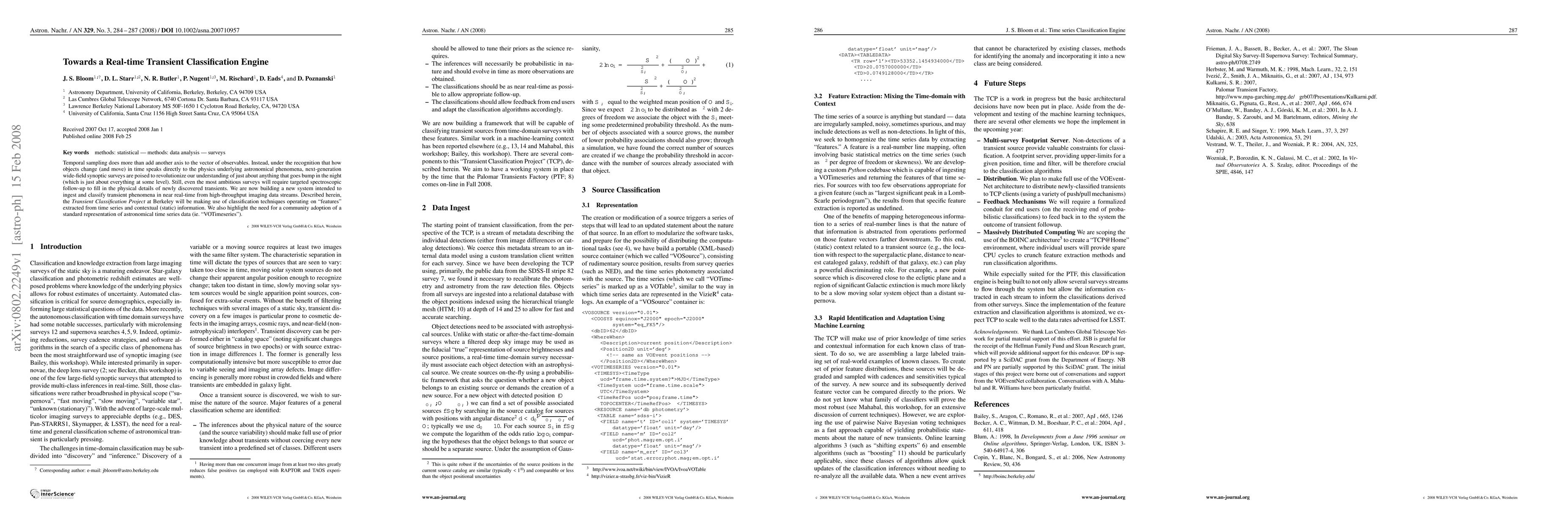 Researchers developed a near-real-time transient classification engine to analyze high-throughput imaging data streams, leveraging time series features and contextual information for efficient transient phenomenon detection.