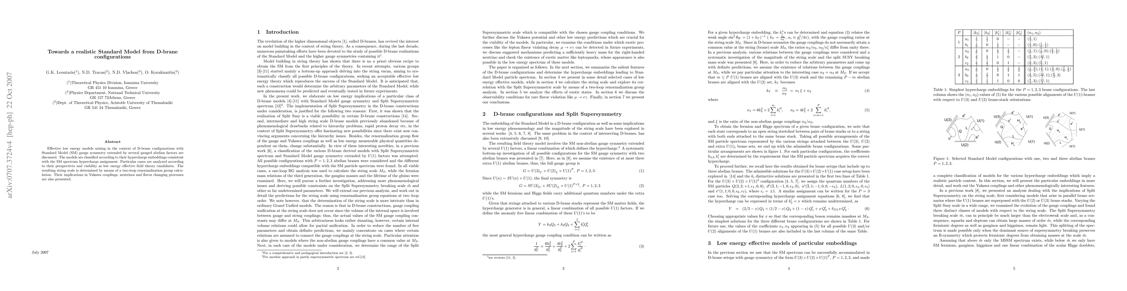 This paper explores effective low energy models from D-brane configurations that extend the Standard Model gauge symmetry, classifying them by hypercharge embeddings. It assesses their viability as low energy effective field theories and determines the resulting string scale through renormalization group calculations, while also discussing implications for Yukawa couplings, neutrinos, and flavor-changing processes.