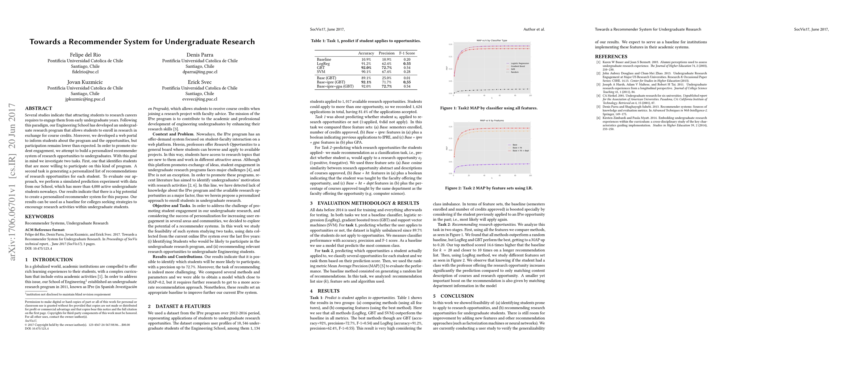 The paper presents a personalized recommender system for undergraduate research opportunities, utilizing machine learning techniques to identify potential participants and suggest relevant projects.