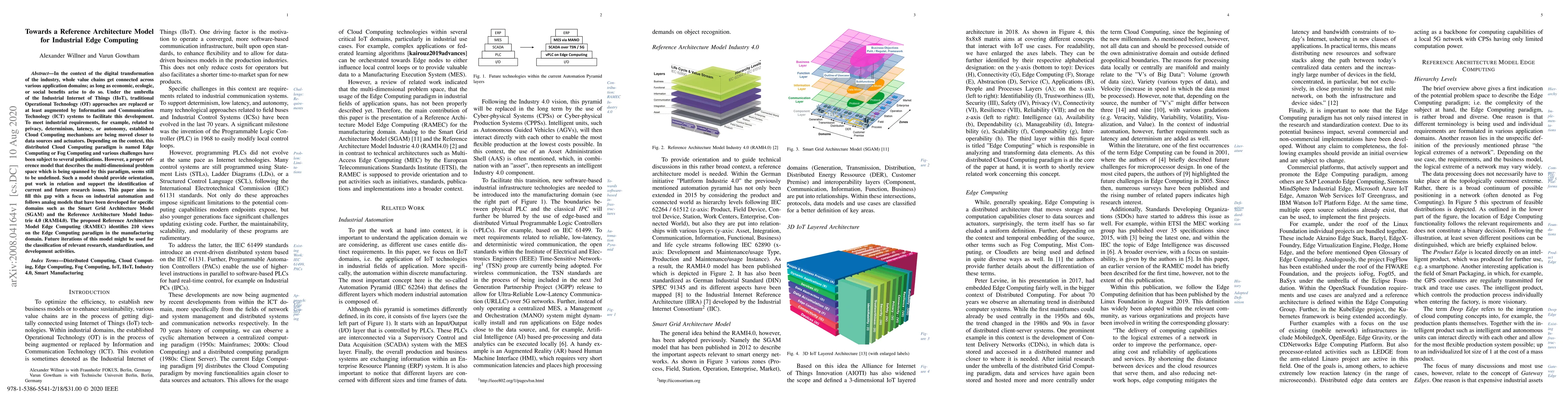 This paper proposes a Reference Architecture Model for Industrial Edge Computing (RAMEC) to address the lack of a comprehensive model for the distributed computing paradigm in industrial automation. The RAMEC identifies 210 views to provide a structured orientation for current and future research, standardization, and development activities in industrial edge computing.