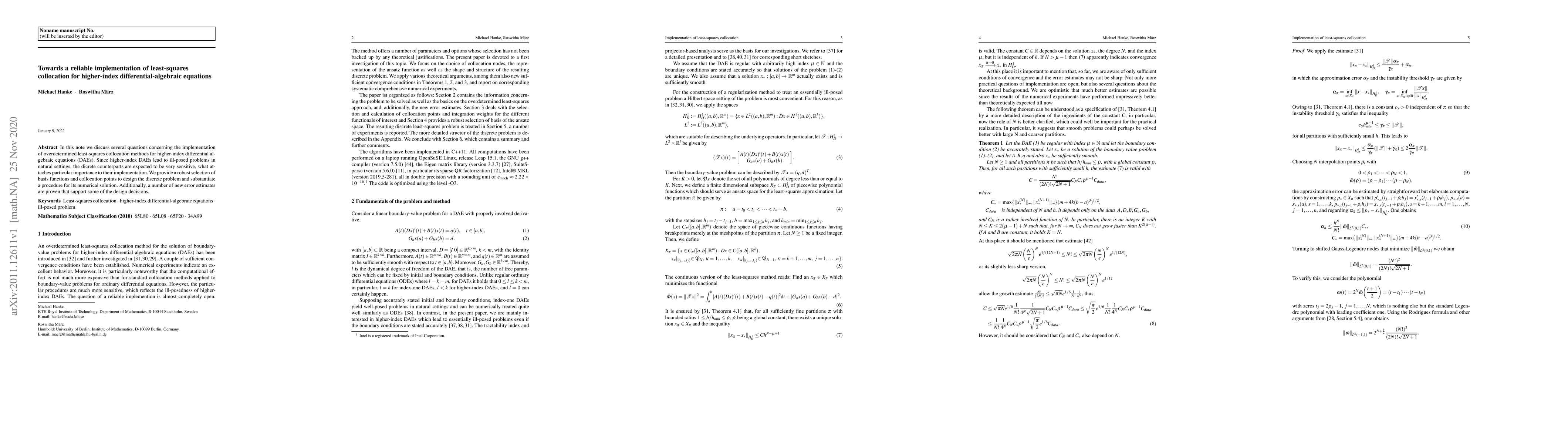 This paper addresses the implementation challenges of least-squares collocation methods for solving higher-index differential-algebraic equations, emphasizing robust basis function and collocation point selection. It also provides new error estimates to support the proposed numerical solution procedure.