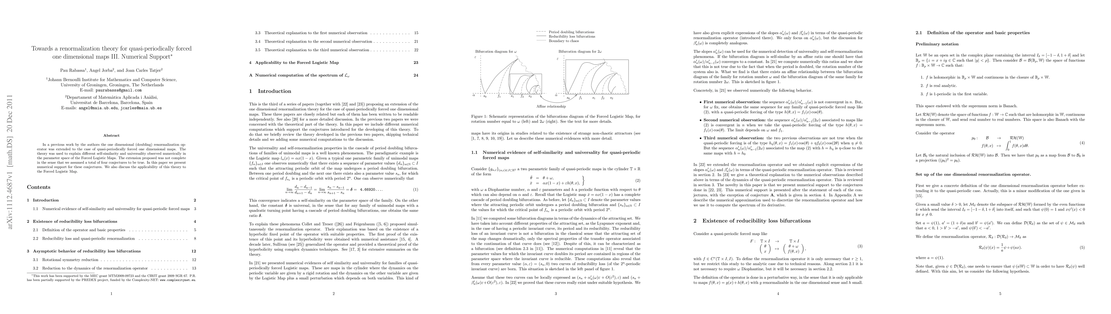 This paper provides numerical evidence to support the conjectures extending the one-dimensional renormalization operator to quasi-periodically forced maps, specifically the Forced Logistic Map, and discusses the theory's applicability to this system.