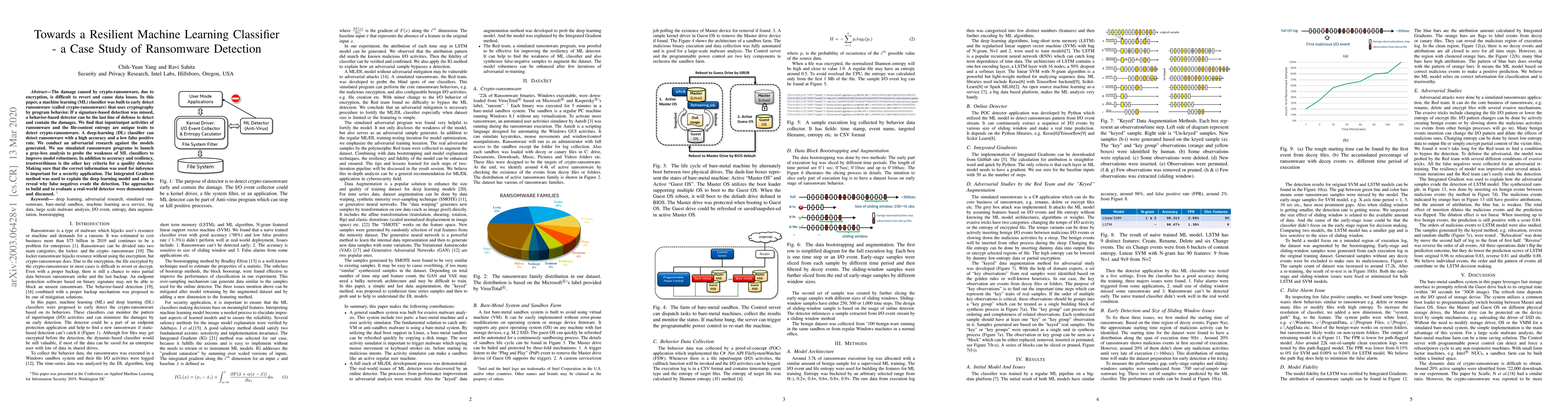 The damage caused by crypto-ransomware, due to encryption, is difficult to revert and cause data losses. In this paper, a machine learning (ML) classifier was built to early detect ransomware (called crypto-ransomware) that uses cryptography by program behavior. If a signature-based detection was missed, a behavior-based detector can be the last line of defense to detect and contain the damages. We find that input/output activities of ransomware and the file-content entropy are unique traits to detect crypto-ransomware. A deep-learning (DL) classifier can detect ransomware with a high accuracy and a low false positive rate. We conduct an adversarial research against the models generated. We use simulated ransomware programs to launch a gray-box analysis to probe the weakness of ML classifiers and to improve model robustness. In addition to accuracy and resiliency, trustworthiness is the other key criteria for a quality detector. Making sure that the correct information was used for inference is important for a security application. The Integrated Gradient method was used to explain the deep learning model and also to reveal why false negatives evade the detection. The approaches to build and to evaluate a real-world detector were demonstrated and discussed.