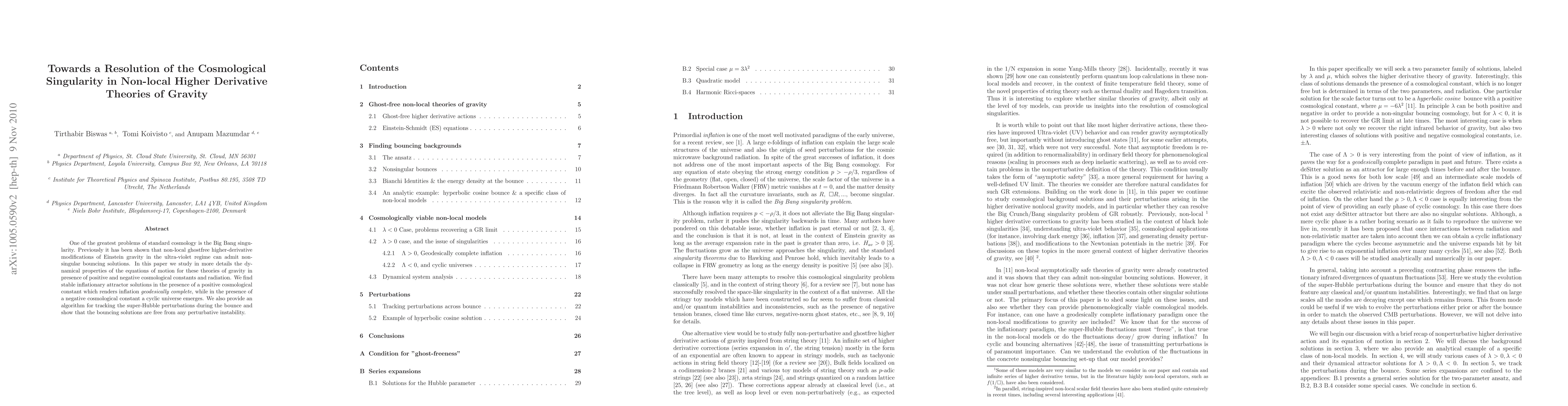 This paper explores non-local higher-derivative gravity theories to resolve the Big Bang singularity, finding stable inflationary and cyclic universe solutions depending on the cosmological constant. It demonstrates geodesically complete inflation with a positive constant and a cyclic universe with a negative constant, while ensuring perturbative stability in bouncing scenarios.