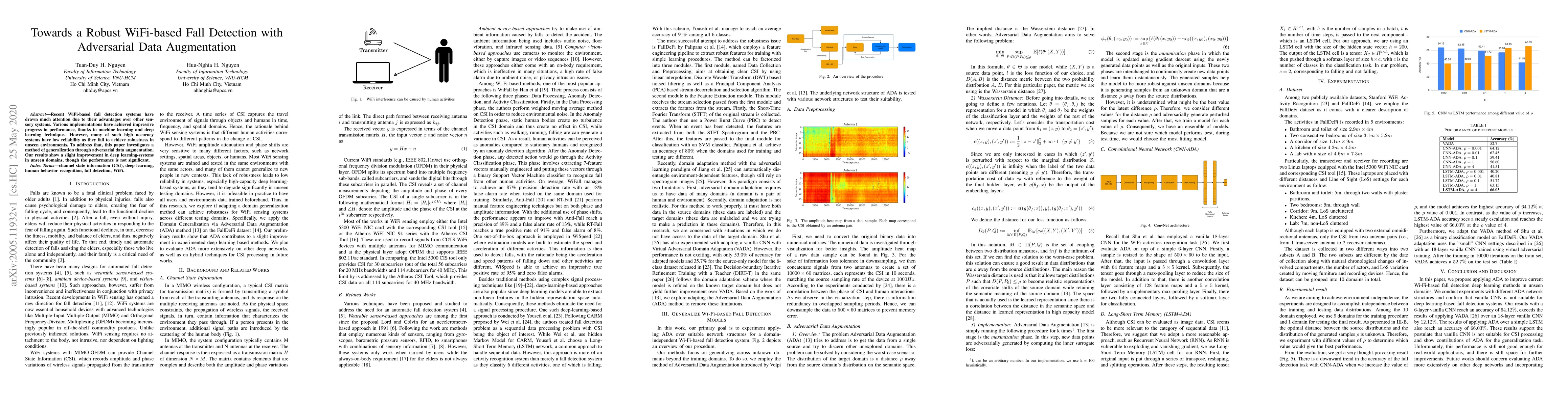 Recent WiFi-based fall detection systems have drawn much attention due to their advantages over other sensory systems. Various implementations have achieved impressive progress in performance, thanks to machine learning and deep learning techniques. However, many of such high accuracy systems have low reliability as they fail to achieve robustness in unseen environments. To address that, this paper investigates a method of generalization through adversarial data augmentation. Our results show a slight improvement in deep learning-systems in unseen domains, though the performance is not significant.