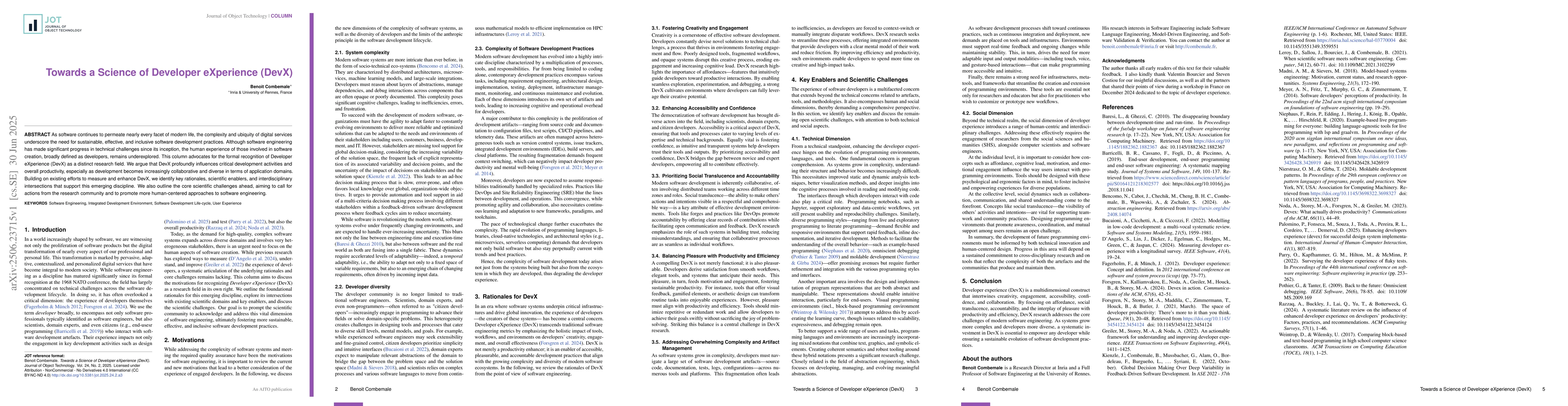 As software continues to permeate nearly every facet of modern life, the complexity and ubiquity of digital services underscore the need for sustainable, effective, and inclusive software development practices. Although software engineering has made significant progress in technical challenges since its inception, the human experience of those involved in software creation, broadly defined as developers, remains underexplored. This column advocates for the formal recognition of Developer eXperience (DevX) as a distinct research field. We argue that DevX profoundly influences critical development activities and overall productivity, especially as development becomes increasingly collaborative and diverse in terms of application domains. Building on existing efforts to measure and enhance DevX, we identify key rationales, scientific enablers, and interdisciplinary intersections that support this emerging discipline. We also outline the core scientific challenges ahead, aiming to call for actions from the research community and to promote more human-centered approaches to software engineering.