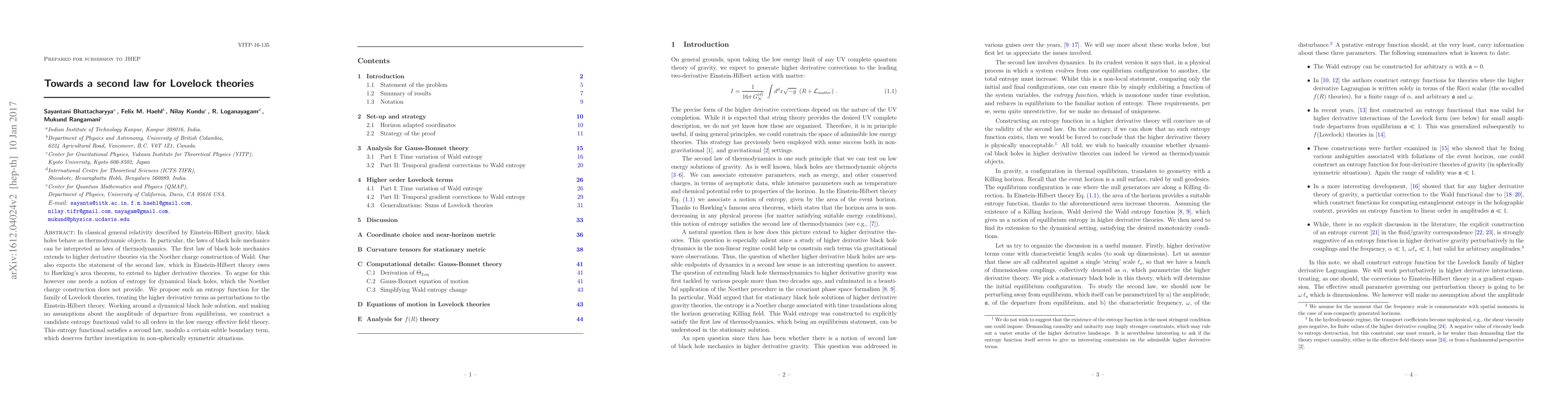 In classical general relativity described by Einstein-Hilbert gravity, black holes behave as thermodynamic objects. In particular, the laws of black hole mechanics can be interpreted as laws of thermodynamics. The first law of black hole mechanics extends to higher derivative theories via the Noether charge construction of Wald. One also expects the statement of the second law, which in Einstein-Hilbert theory owes to Hawking's area theorem, to extend to higher derivative theories. To argue for this however one needs a notion of entropy for dynamical black holes, which the Noether charge construction does not provide. We propose such an entropy function for the family of Lovelock theories, treating the higher derivative terms as perturbations to the Einstein-Hilbert theory. Working around a dynamical black hole solution, and making no assumptions about the amplitude of departure from equilibrium, we construct a candidate entropy functional valid to all orders in the low energy effective field theory. This entropy functional satisfies a second law, modulo a certain subtle boundary term, which deserves further investigation in non-spherically symmetric situations.