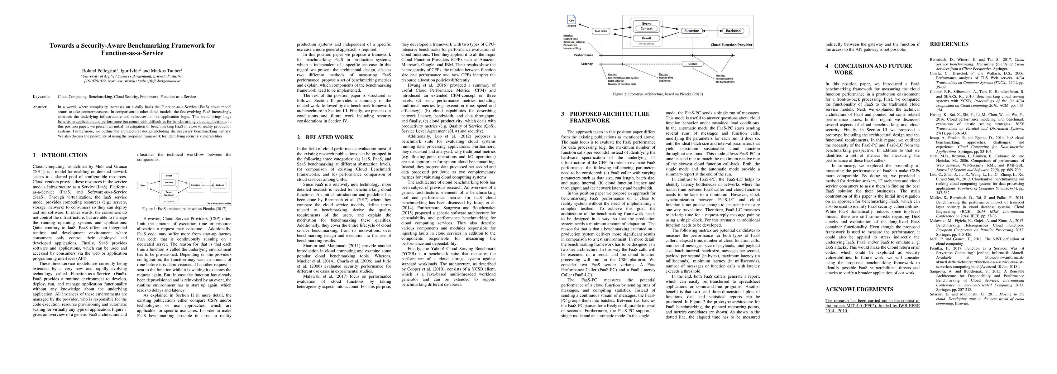 In a world, where complexity increases on a daily basis the Function-as-a-Service (FaaS) cloud model seams to take countermeasures. In comparison to other cloud models, the fast evolving FaaS increasingly abstracts the underlying infrastructure and refocuses on the application logic. This trend brings huge benefits in application and performance but comes with difficulties for benchmarking cloud applications. In this position paper, we present an initial investigation of benchmarking FaaS in close to reality production systems. Furthermore, we outline the architectural design including the necessary benchmarking metrics. We also discuss the possibility of using the proposed framework for identifying security vulnerabilities.