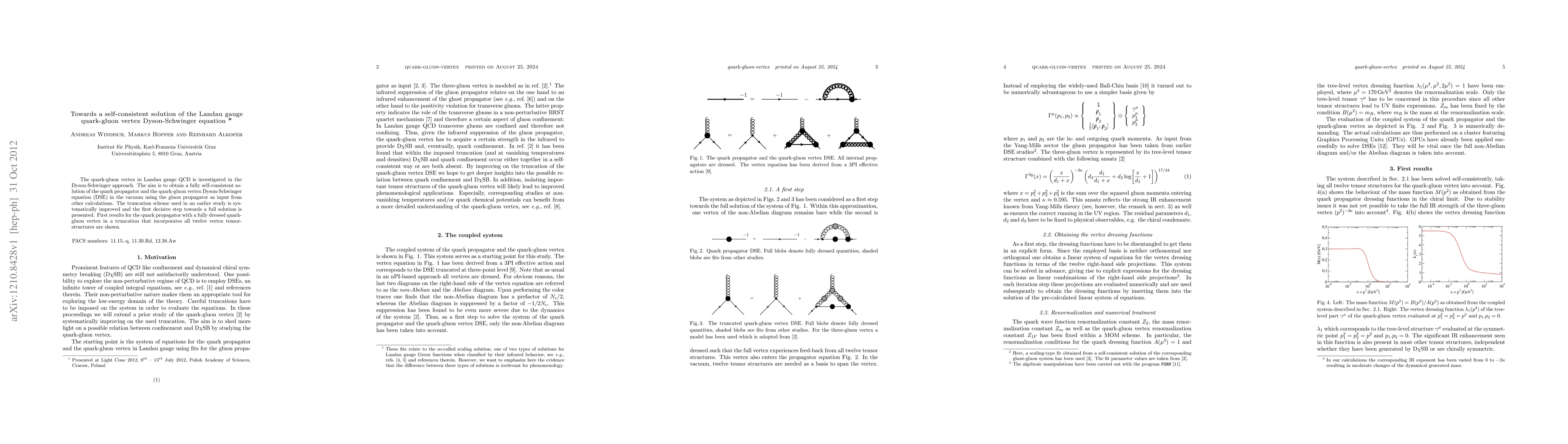 This paper investigates the quark-gluon vertex in Landau gauge QCD using the Dyson-Schwinger approach, aiming for a self-consistent solution of the quark propagator and vertex equation. The study improves upon previous truncation schemes and presents initial results for the quark propagator with a fully dressed vertex.
