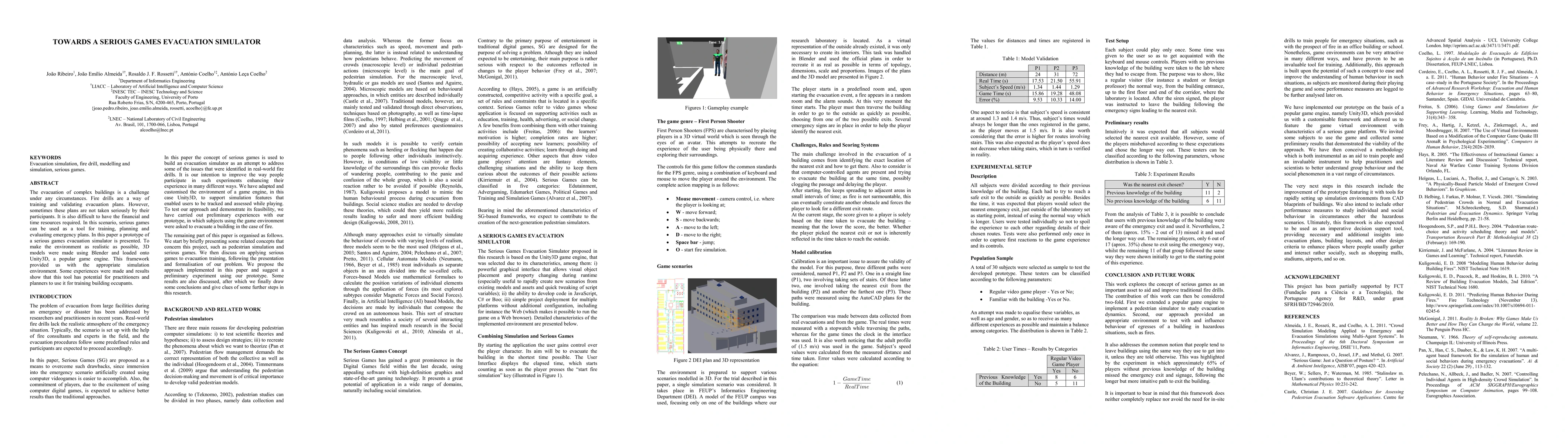 The evacuation of complex buildings is a challenge under any circumstances. Fire drills are a way of training and validating evacuation plans. However, sometimes these plans are not taken seriously by their participants. It is also difficult to have the financial and time resources required. In this scenario, serious games can be used as a tool for training, planning and evaluating emergency plans. In this paper a prototype of a serious games evacuation simulator is presented. To make the environment as realistic as possible, 3D models were made using Blender and loaded onto Unity3D, a popular game engine. This framework provided us with the appropriate simulation environment. Some experiences were made and results show that this tool has potential for practitioners and planners to use it for training building occupants.
