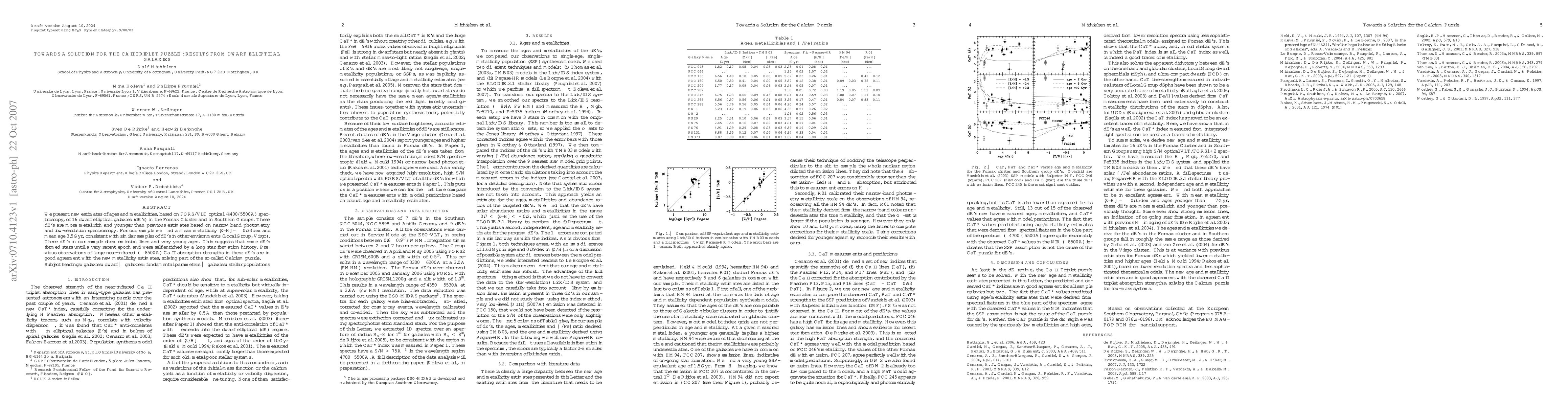 We present new estimates of ages and metallicities, based on FORS/VLT optical (4400-5500A) spectroscopy, of 16 dwarf elliptical galaxies (dE's) in the Fornax Cluster and in Southern Groups. These dE's are more metal-rich and younger than previous estimates based on narrow-band photometry and low-resolution spectroscopy. For our sample we find a mean metallicity [Z/H] = -0.33 dex and mean age 3.5 Gyr, consistent with similar samples of dE's in other environments (Local Group, Virgo). Three dE's in our sample show emission lines and very young ages. This suggests that some dE's formed stars until a very recent epoch and were self-enriched by a long star formation history. Previous observations of large near-infrared (~8500A) Ca II absorption strengths in these dE's are in good agreement with the new metallicity estimates, solving part of the so-called Calcium puzzle.