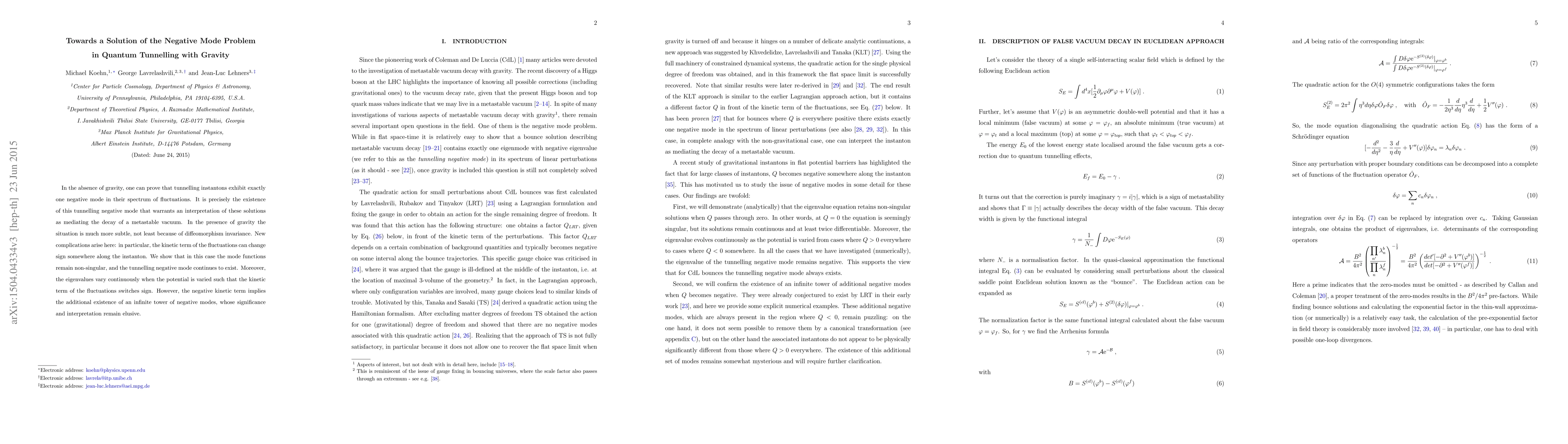 In the absence of gravity, one can prove that tunnelling instantons exhibit exactly one negative mode in their spectrum of fluctuations. It is precisely the existence of this tunnelling negative mode that warrants an interpretation of these solutions as mediating the decay of a metastable vacuum. In the presence of gravity the situation is much more subtle, not least because of diffeomorphism invariance. New complications arise here: in particular, the kinetic term of the fluctuations can change sign somewhere along the instanton. We show that in this case the mode functions remain non-singular, and the tunnelling negative mode continues to exist. Moreover, the eigenvalues vary continuously when the potential is varied such that the kinetic term of the fluctuations switches sign. However, the negative kinetic term implies the additional existence of an infinite tower of negative modes, whose significance and interpretation remain elusive.