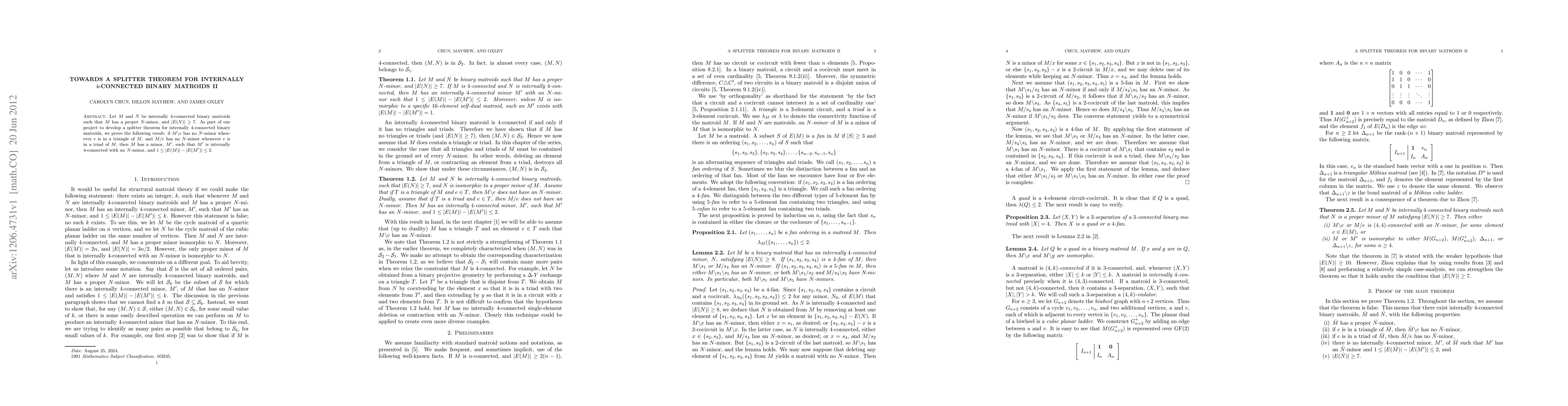 This paper proves a significant result towards establishing a splitter theorem for internally 4-connected binary matroids: if a binary matroid M with a proper N-minor satisfies certain conditions regarding minors, then M has a sub-matroid M' that retains internal 4-connectivity and contains an N-minor, with the size difference between M and M' being less than 3.