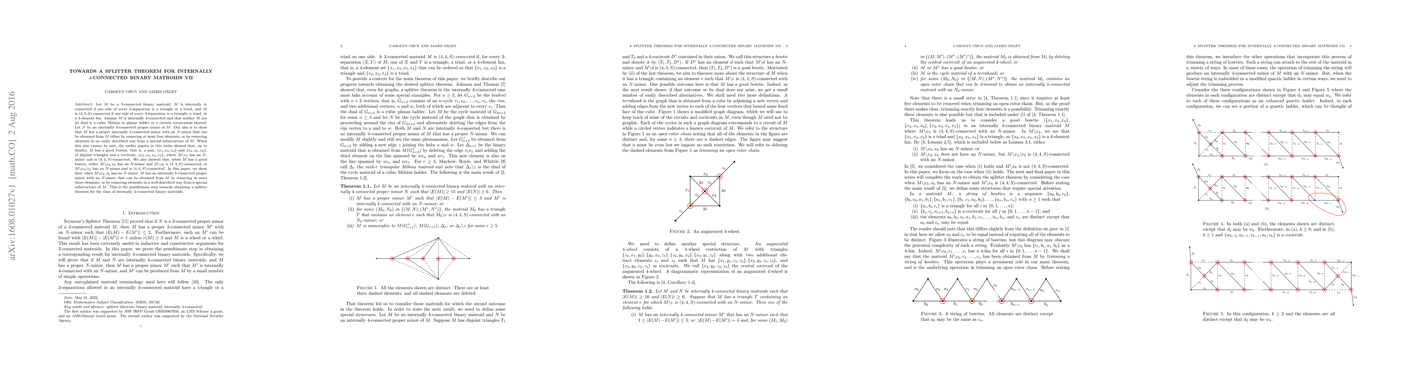 Research shows that internally 4-connected binary matroids have a proper minor with an N-minor that can be obtained from the original matroid by removing at most three elements or in a well-described way from a special substructure.