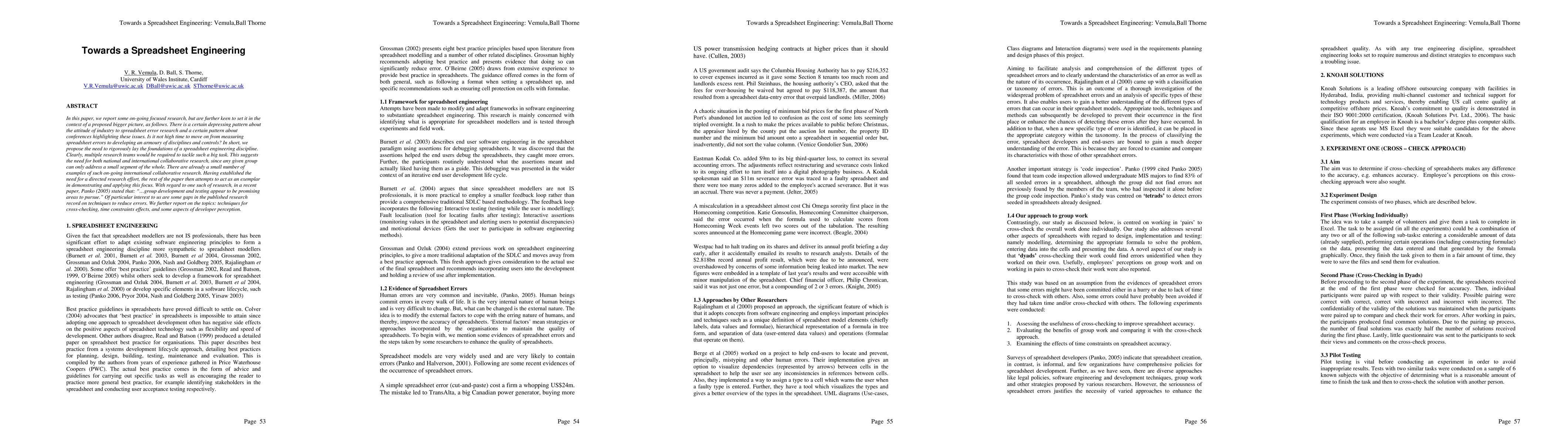 This paper advocates for the establishment of a rigorous spreadsheet engineering discipline to address prevalent spreadsheet errors, emphasizing the need for collaborative, international research efforts. It highlights gaps in current research on error reduction techniques, focusing on cross-checking methods, time constraints, and developer perception.