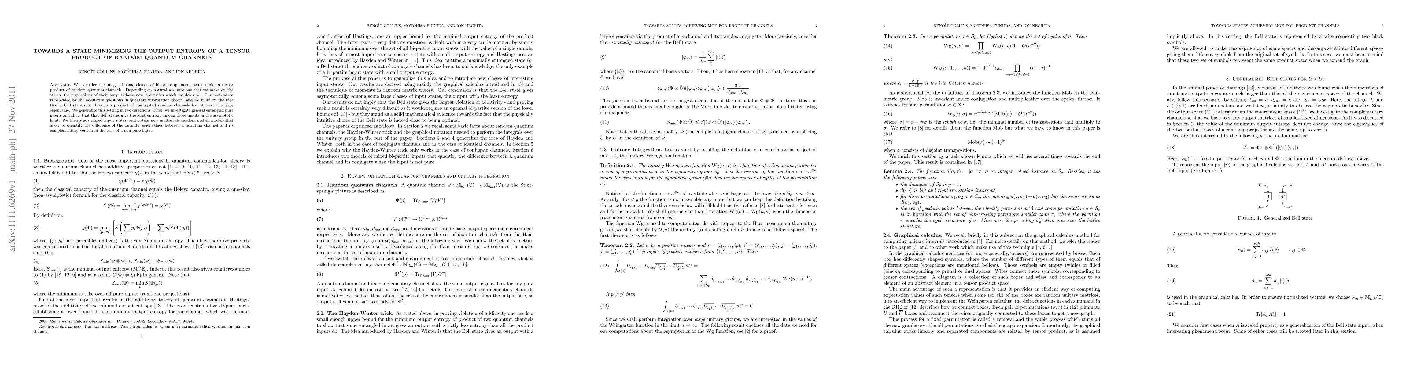 A research paper investigates how random quantum channels affect the output entropy of tensor products of bipartite states, finding that Bell states produce the least entropy for general entangled pure inputs and introducing new models to analyze mixed input states.
