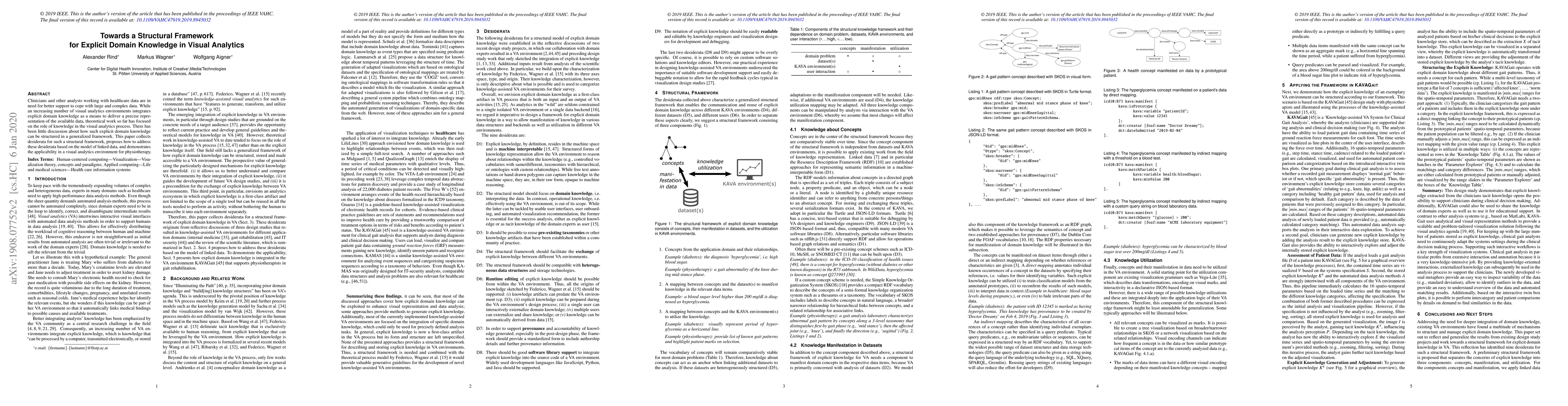 This paper proposes a structural framework for organizing explicit domain knowledge in visual analytics to better support clinicians with complex healthcare data. It addresses the desiderata for such a framework using linked data models and demonstrates its application in a physiotherapy visual analytics environment.