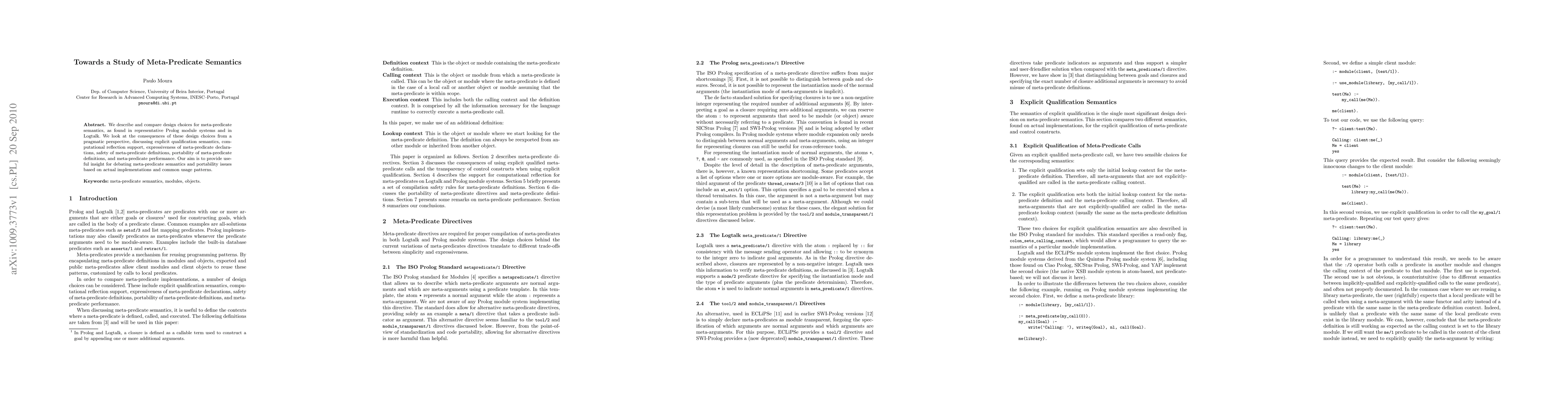 This paper compares meta-predicate semantics in Prolog module systems and Logtalk, analyzing design choices regarding qualification, reflection, expressiveness, safety, portability, and performance to inform debates on meta-predicate semantics and portability.