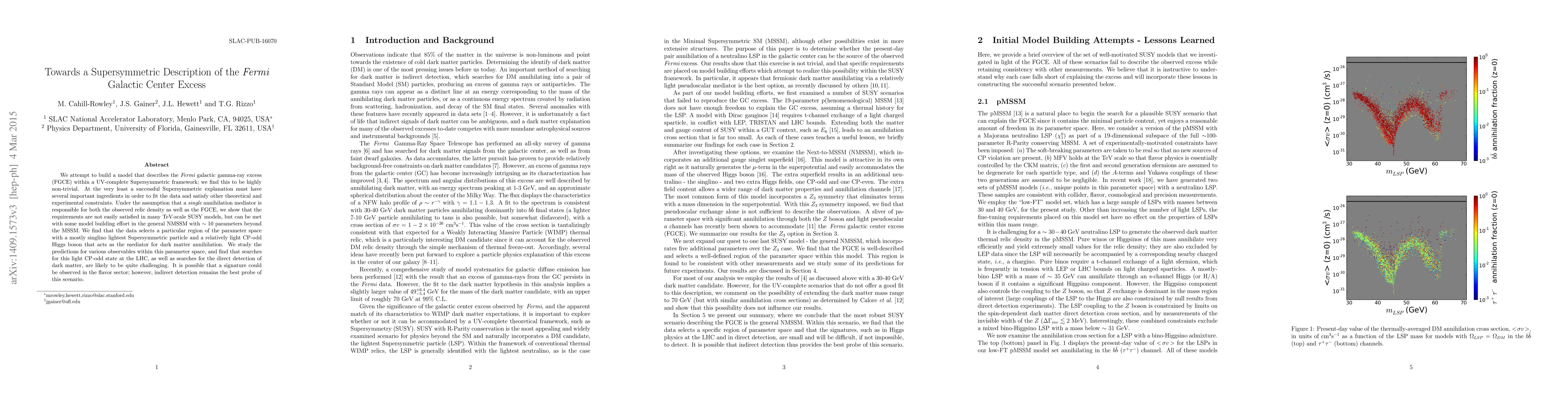 We attempt to build a model that describes the {\it Fermi} galactic gamma-ray excess (FGCE) within a UV-complete Supersymmetric framework; we find this to be highly non-trivial. At the very least a successful Supersymmetric explanation must have several important ingredients in order to fit the data and satisfy other theoretical and experimental constraints. Under the assumption that a {\it single} annihilation mediator is responsible for both the observed relic density as well as the FGCE, we show that the requirements are not easily satisfied in many TeV-scale SUSY models, but can be met with some model building effort in the general NMSSM with $\sim 10$ parameters beyond the MSSM. We find that the data selects a particular region of the parameter space with a mostly singlino lightest Supersymmetric particle and a relatively light CP-odd Higgs boson that acts as the mediator for dark matter annihilation. We study the predictions for various observables within this parameter space, and find that searches for this light CP-odd state at the LHC, as well as searches for the direct detection of dark matter, are likely to be quite challenging. It is possible that a signature could be observed in the flavor sector; however, indirect detection remains the best probe of this scenario.