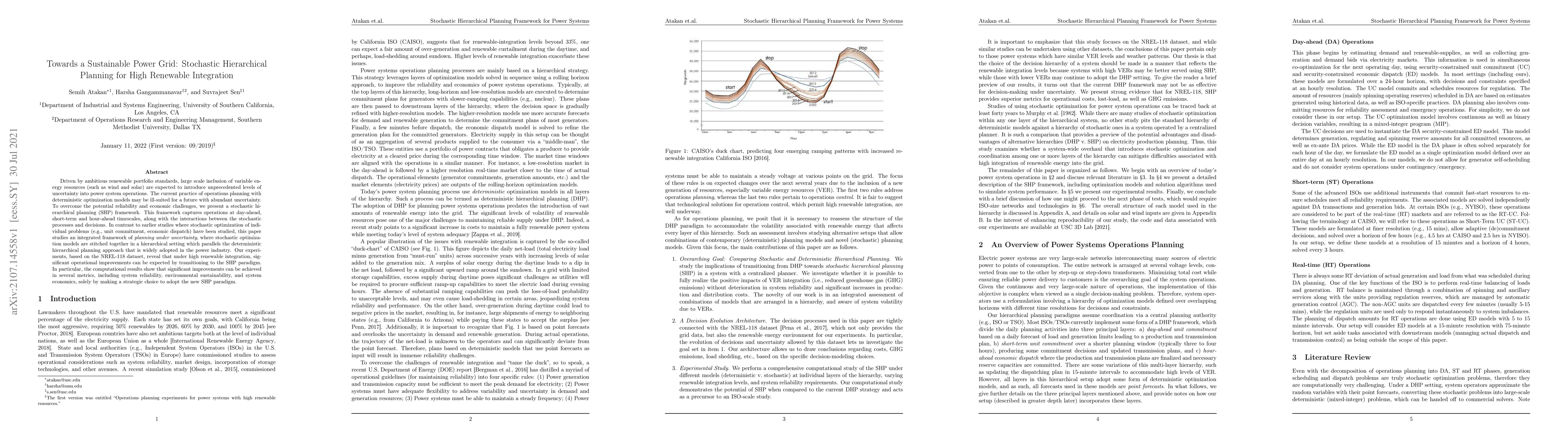 This paper proposes a stochastic hierarchical planning framework to manage the uncertainties introduced by high renewable energy integration in power grids. The framework integrates stochastic optimization models across different planning timescales, demonstrating significant improvements in system reliability, sustainability, and economics compared to traditional deterministic methods.