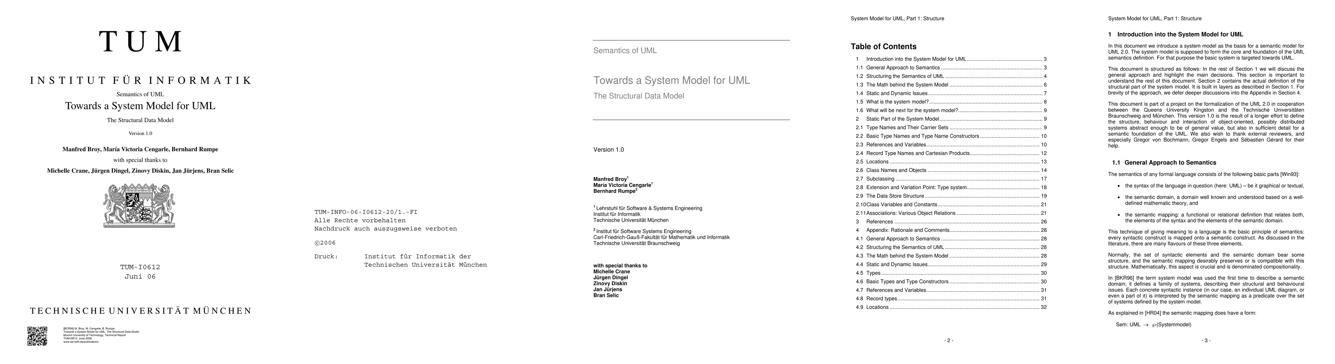 In this document we introduce a system model as the basis for a semantic model for UML 2.0. The system model is supposed to form the core and foundation of the UML semantics definition. For that purpose the basic system is targeted towards UML. This document is structured as follows: In the rest of Section 1 we will discuss the general approach and highlight the main decisions. This section is important to understand the rest of this document. Section 2 contains the actual definition of the structural part of the system model. It is built in layers as described in Section 1. For brevity of the approach, we defer deeper discussions into the Appendix in Section 4. This document is part of a project on the formalization of the UML 2.0 in cooperation between the Queens University Kingston and the Technische Universit\"aten Braunschweig and M\"unchen. This version 1.0 is the result of a longer effort to define the structure, behavior and interaction of object-oriented, possibly distributed systems abstract enough to be of general value, but also in sufficient detail for a semantic foundation of the UML. We also wish to thank external reviewers, and especially Gregor von Bochmann, Gregor Engels and S\'ebastien G\'erard for their help.