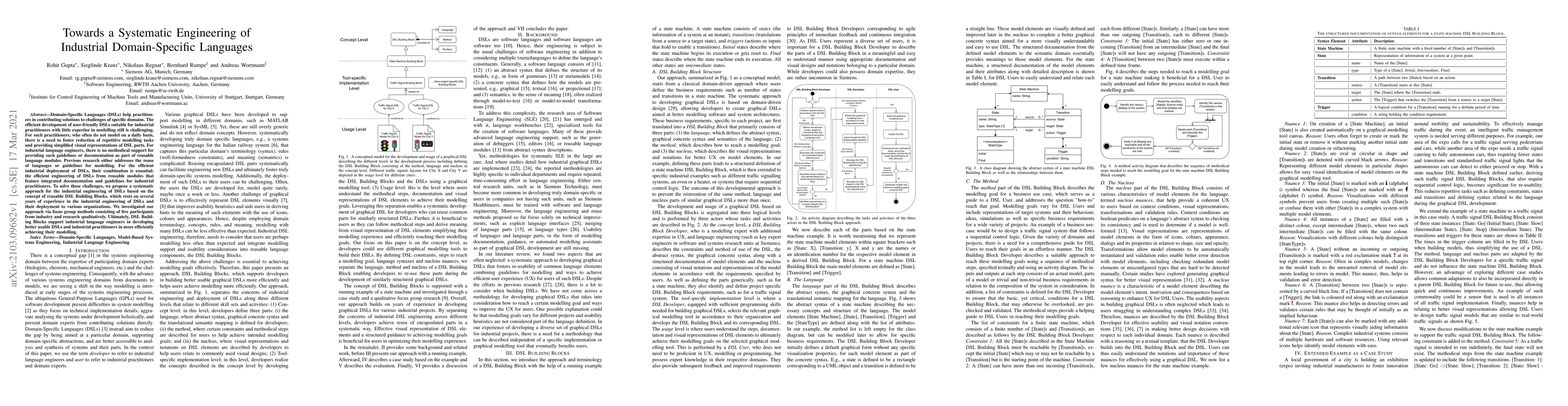 This paper proposes a systematic approach to engineer industrial Domain-Specific Languages (DSLs) using reusable DSL Building Blocks, aiming to simplify modelling tasks for practitioners with limited expertise. The approach was qualitatively tested with industry participants, showing that DSL Building Blocks can enhance usability and efficiency in industrial DSL development.