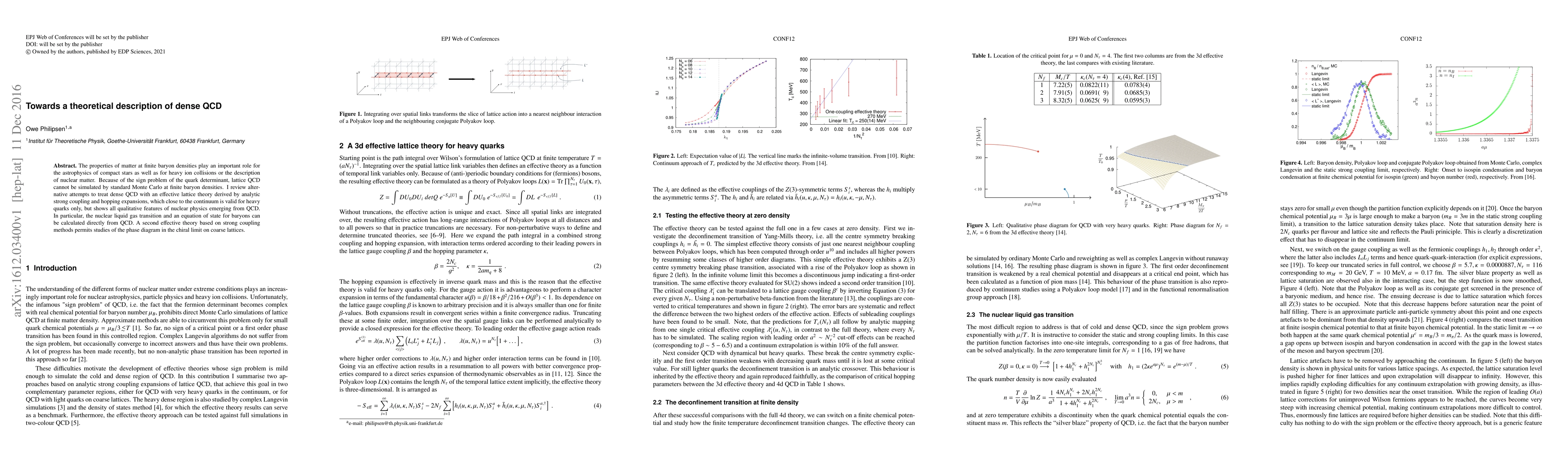 The properties of matter at finite baryon densities play an important role for the astrophysics of compact stars as well as for heavy ion collisions or the description of nuclear matter. Because of the sign problem of the quark determinant, lattice QCD cannot be simulated by standard Monte Carlo at finite baryon densities. I review alternative attempts to treat dense QCD with an effective lattice theory derived by analytic strong coupling and hopping expansions, which close to the continuum is valid for heavy quarks only, but shows all qualitative features of nuclear physics emerging from QCD. In particular, the nuclear liquid gas transition and an equation of state for baryons can be calculated directly from QCD. A second effective theory based on strong coupling methods permits studies of the phase diagram in the chiral limit on coarse lattices.