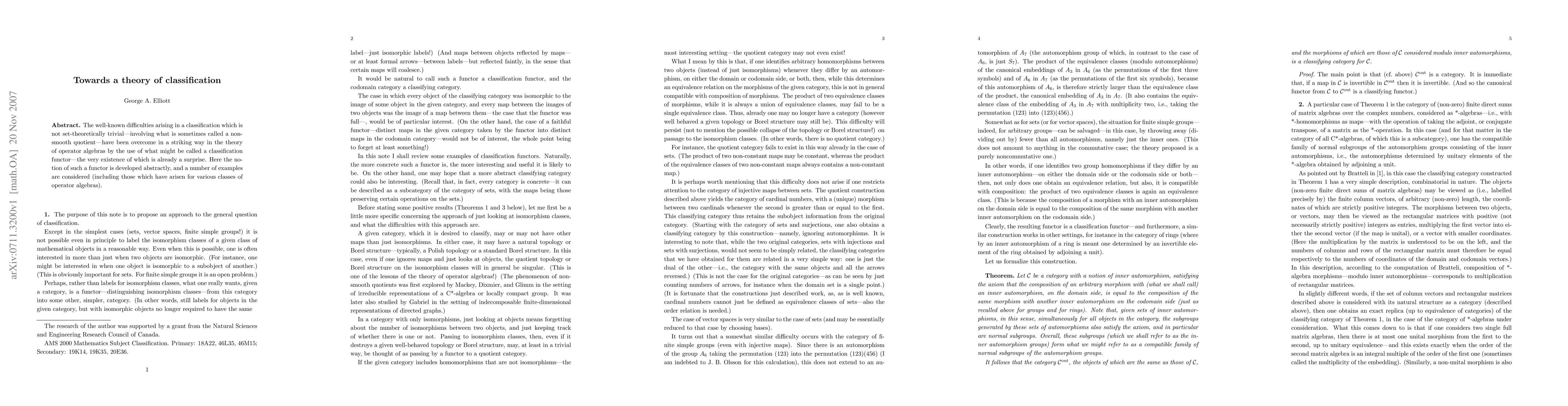 The well-known difficulties arising in a classification which is not set-theoretically trivial---involving what is sometimes called a non-smooth quotient---have been overcome in a striking way in the theory of operator algebras by the use of what might be called a classification functor---the very existence of which is already a surprise. Here the notion of such a functor is developed abstractly, and a number of examples are considered (including those which have arisen for various classes of operator algebras).