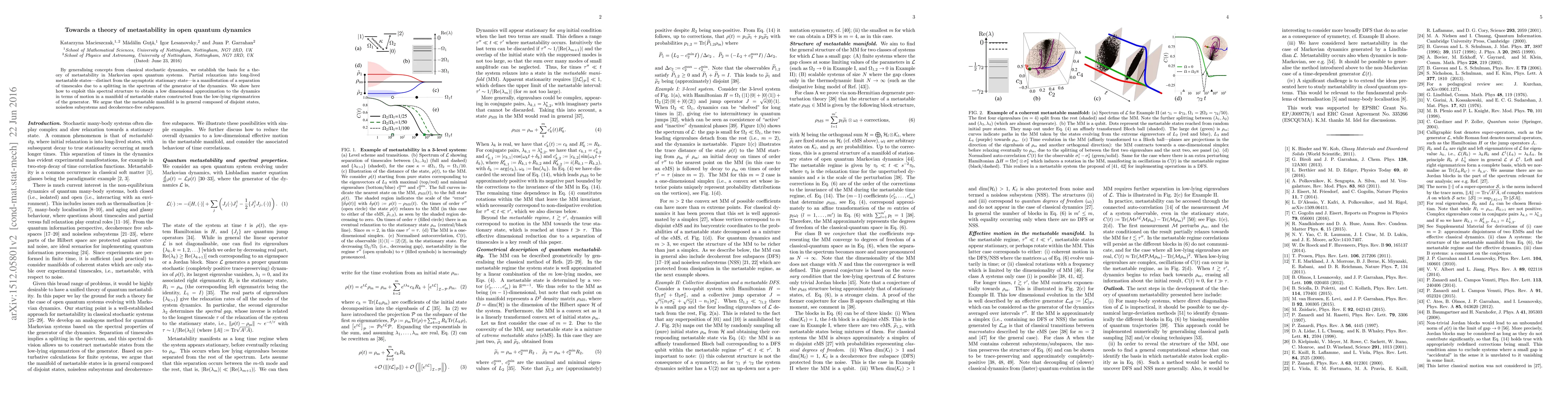 This paper develops a theory of metastability in open quantum systems by generalizing classical stochastic dynamics concepts. It identifies a spectral structure that allows for low-dimensional approximations of dynamics in terms of metastable states, which are distinct from the asymptotic stationary state.