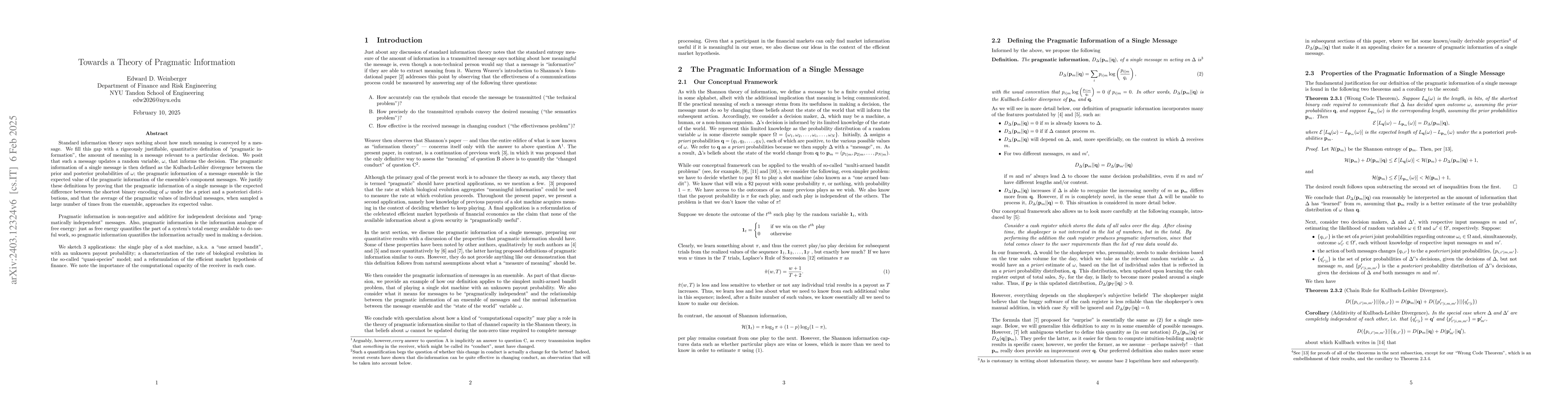 This paper introduces a rigorous definition of "pragmatic information" as the relevance of a message's meaning to a specific decision, quantified by the Kullback-Leibler divergence updating a "state of the world" random variable. It demonstrates the properties of this information measure and outlines applications in decision-making, biological evolution, and financial economics, emphasizing the computational needs for processing such information.