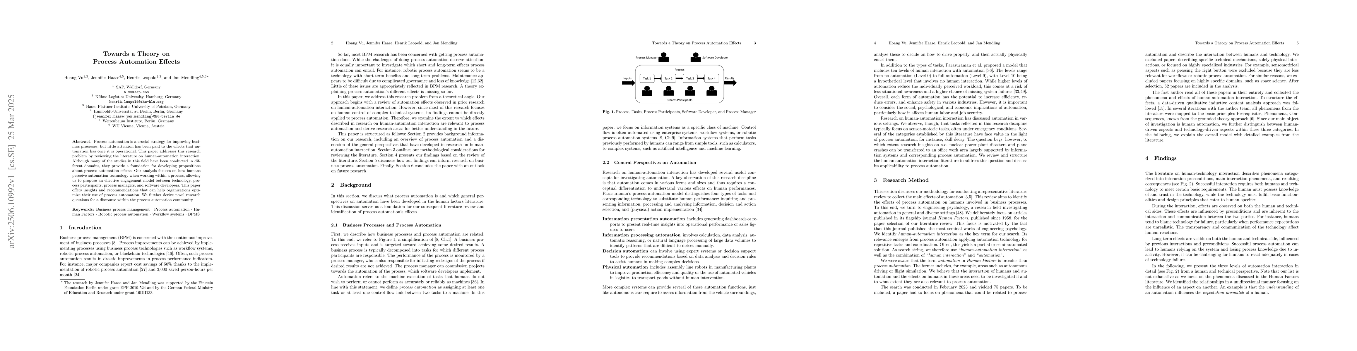Process automation is a crucial strategy for improving business processes, but little attention has been paid to the effects that automation has once it is operational. This paper addresses this research problem by reviewing the literature on human-automation interaction. Although many of the studies in this field have been conducted in different domains, they provide a foundation for developing propositions about process automation effects. Our analysis focuses on how humans perceive automation technology when working within a process, allowing us to propose an effective engagement model between technology, process participants, process managers, and software developers. This paper offers insights and recommendations that can help organizations optimize their use of process automation. We further derive novel research questions for a discourse within the process automation community.
