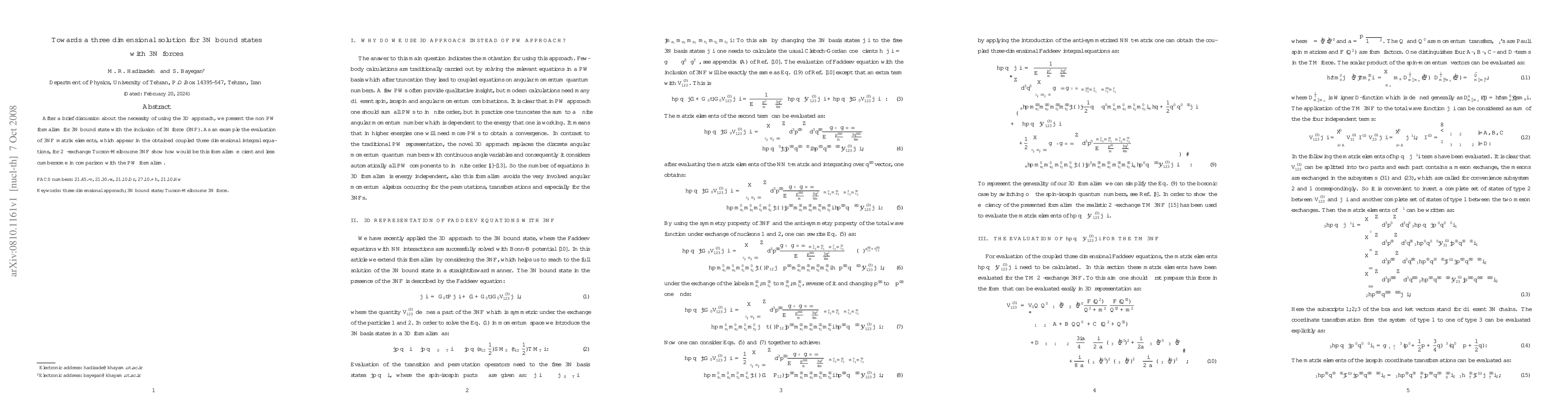 This paper introduces a three-dimensional non PW formalism for 3N bound states incorporating 3N forces, demonstrating its efficiency through the evaluation of 3NF matrix elements for the $2\pi$-exchange Tucson-Melbourne 3NF, showing it to be less cumbersome than the traditional PW formalism.