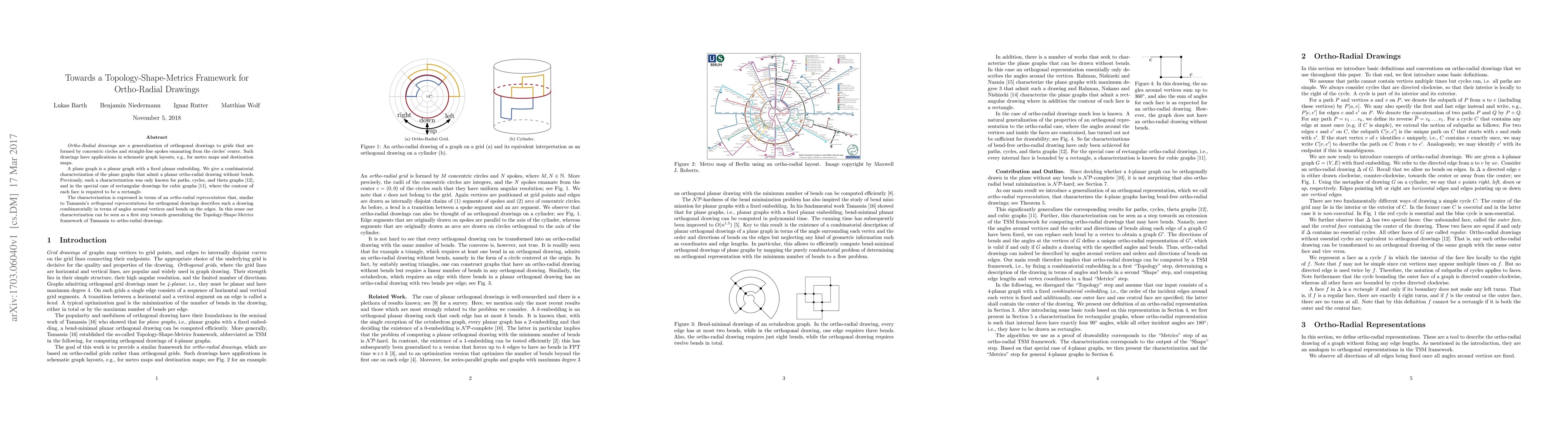 This paper presents a combinatorial characterization for plane graphs that can be drawn ortho-radially without bends, extending beyond previous knowledge of paths, cycles, and theta graphs. The proposed ortho-radial representation aims to generalize Tamassia's framework for orthogonal drawings to ortho-radial drawings.