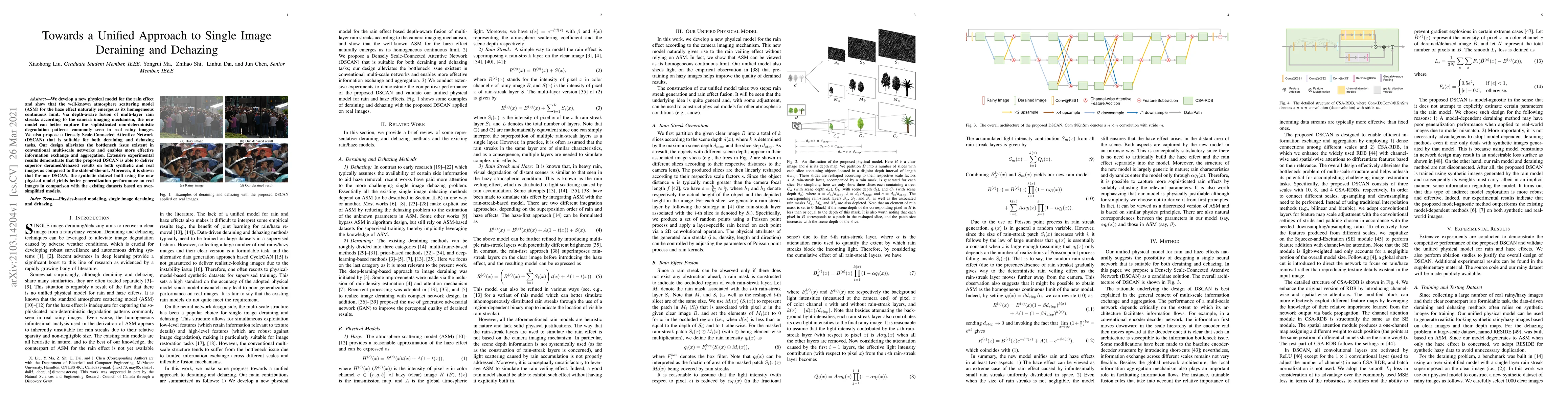 This paper proposes a new unified physical model for single image deraining and dehazing, showing that the atmosphere scattering model naturally emerges from it. It introduces a Densely Scale-Connected Attentive Network (DSCAN) that effectively handles both tasks, outperforming existing methods in extensive experiments.