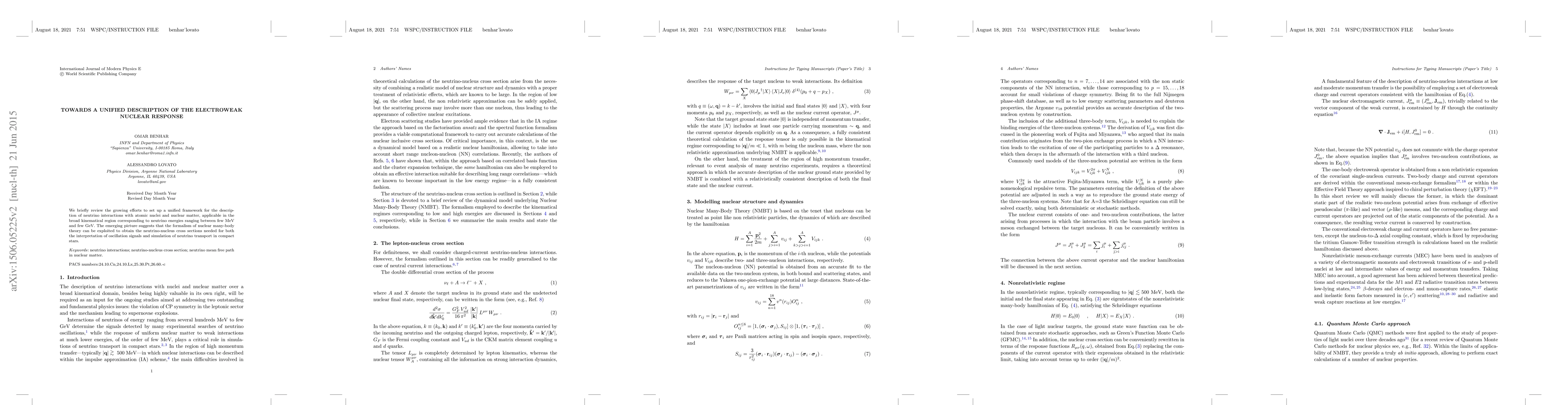 This paper reviews efforts to develop a unified framework for describing neutrino interactions with atomic nuclei across a range of energies from MeV to GeV, utilizing nuclear many-body theory to derive essential neutrino-nucleus cross sections for interpreting oscillation signals and simulating neutrino transport in compact stars.