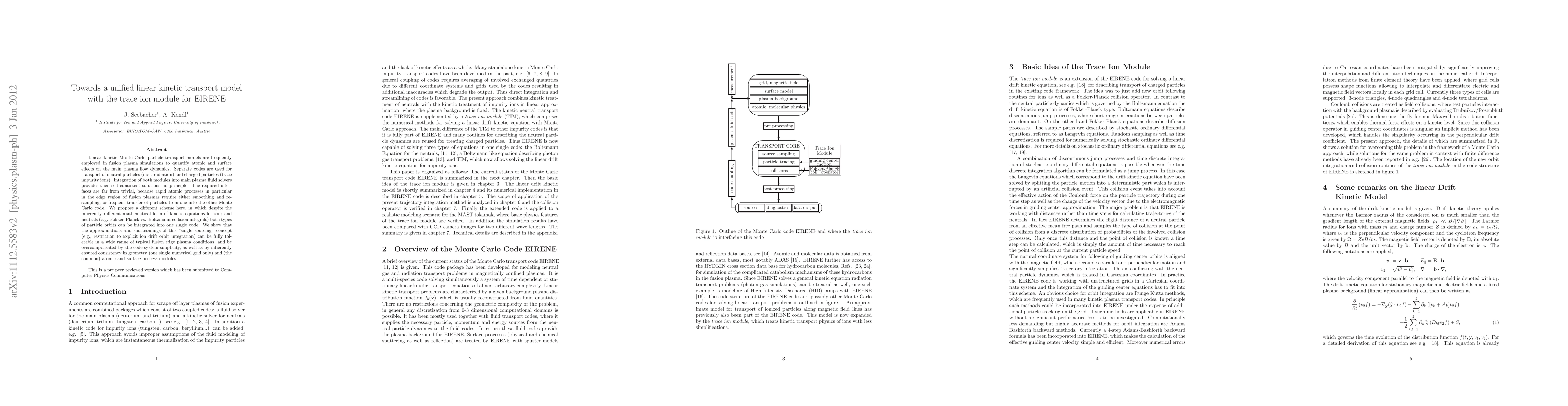 Linear kinetic Monte Carlo particle transport models are frequently employed in fusion plasma simulations to quantify atomic and surface effects on the main plasma flow dynamics. Separate codes are used for transport of neutral particles (incl. radiation) and charged particles (trace impurity ions). Integration of both modules into main plasma fluid solvers provides then self consistent solutions, in principle. The required interfaces are far from trivial, because rapid atomic processes in particular in the edge region of fusion plasmas require either smoothing and resampling, or frequent transfer of particles from one into the other Monte Carlo code. We propose a different scheme here, in which despite the inherently different mathematical form of kinetic equations for ions and neutrals (e.g. Fokker-Planck vs. Boltzmann collision integrals) both types of particle orbits can be integrated into one single code. We show that the approximations and shortcomings of this "single sourcing" concept (e.g., restriction to explicit ion drift orbit integration) can be fully tolerable in a wide range of typical fusion edge plasma conditions, and be overcompensated by the code-system simplicity, as well as by inherently ensured consistency in geometry (one single numerical grid only) and (the common) atomic and surface process modules
