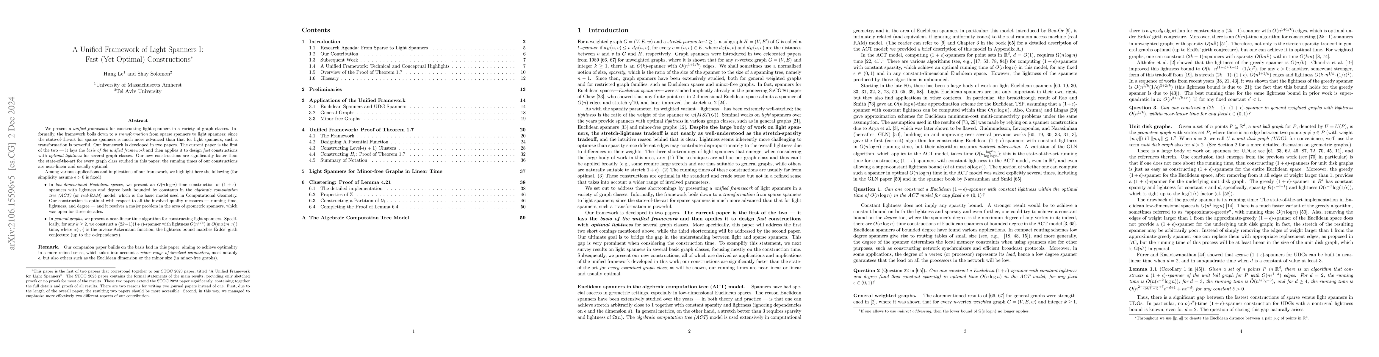 This paper introduces a unified framework for constructing fast and optimal light spanners across various graph classes, addressing previous ad hoc techniques and sub-optimal runtimes. It presents efficient constructions for Euclidean and general graphs, resolving long-standing problems and outperforming existing sparse spanner methods.