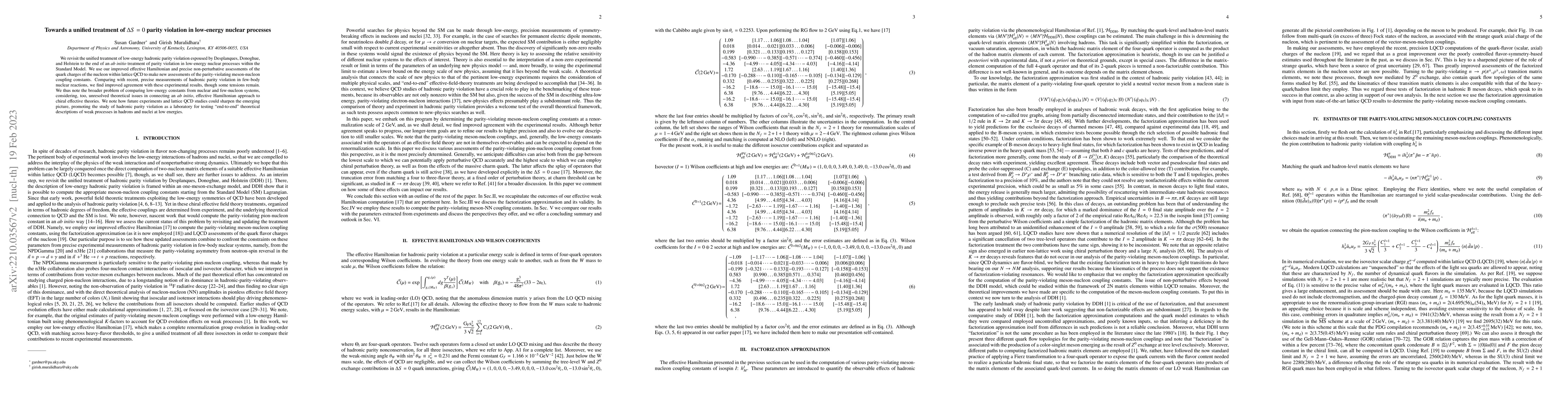 We revisit the unified treatment of low-energy hadronic parity violation espoused by Desplanques, Donoghue, and Holstein to the end of an ab initio treatment of parity violation in low-energy nuclear processes within the Standard Model. We use our improved effective Hamiltonian and precise non-perturbative assessments of the quark charges of the nucleon within lattice QCD to make new assessments of the parity-violating meson-nucleon coupling constants. Comparing with recent, precise measurements of hadronic parity violation in few-body nuclear reactions, we find improved agreement with these experimental results, though some tensions remain. We thus note the broader problem of comparing low-energy constants from nuclear and few-nucleon systems, considering, too, unresolved theoretical issues in connecting an ab initio, effective Hamiltonian approach to chiral effective theories. We note how future experiments and lattice QCD studies could sharpen the emerging picture, promoting the study of hadronic parity violation as a laboratory for testing ``end-to-end'' theoretical descriptions of weak processes in hadrons and nuclei at low energies.
