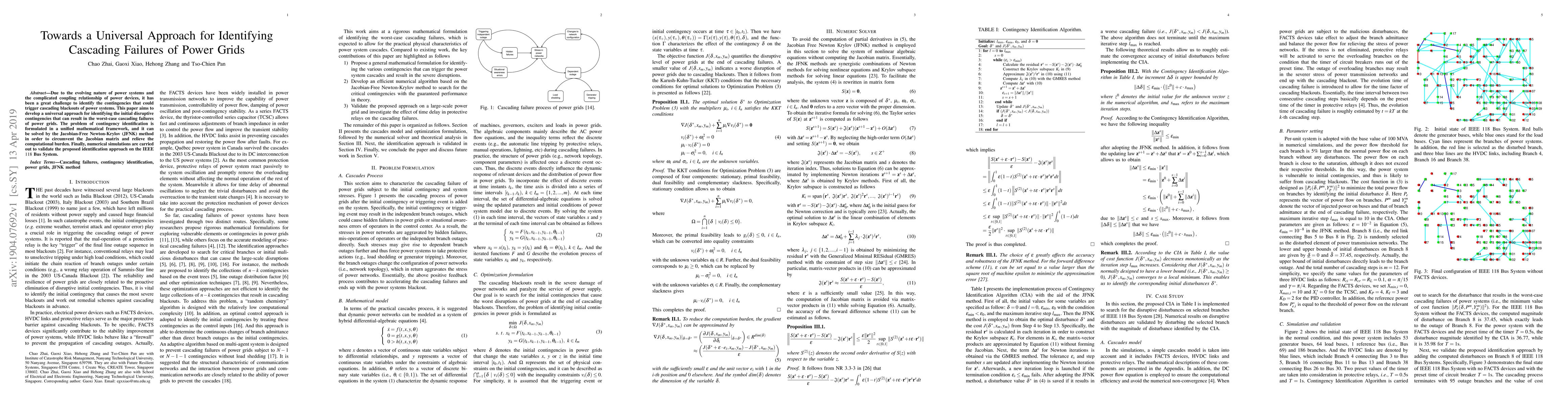 This paper develops a universal method to identify initial contingencies leading to cascading failures in power grids, formulated in a mathematical framework solvable by the Jacobian-Free Newton-Krylov method. Numerical simulations on the IEEE 118 Bus System validate the proposed approach.