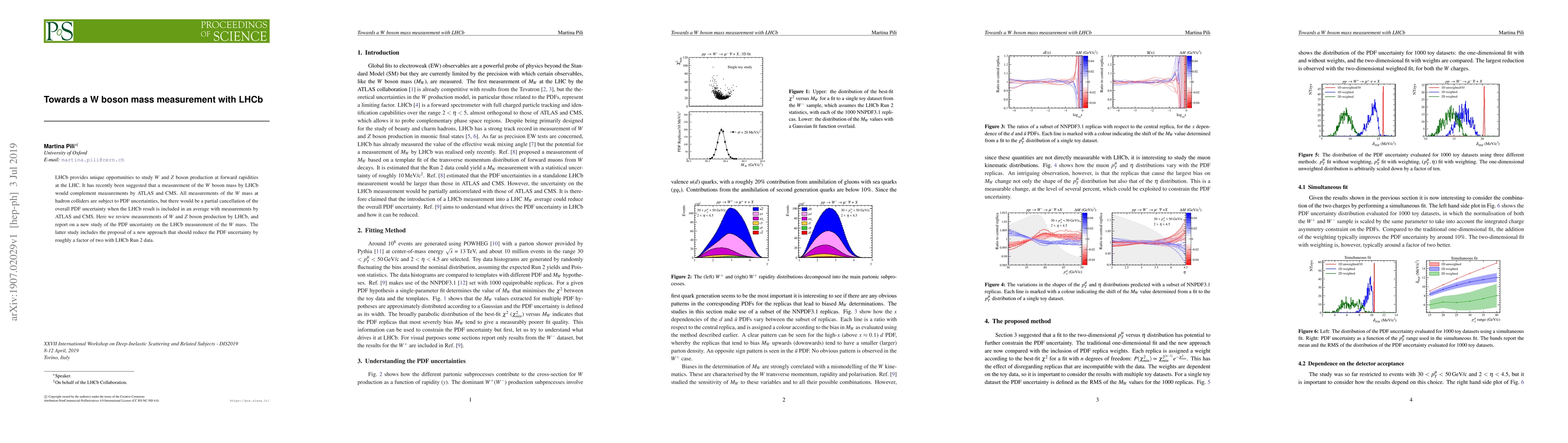 This paper reviews LHCb's measurements of $W$ and $Z$ boson production and proposes a new method to reduce the PDF uncertainty on the $W$ boson mass measurement by a factor of two, aiming to complement and improve upon existing measurements from ATLAS and CMS.