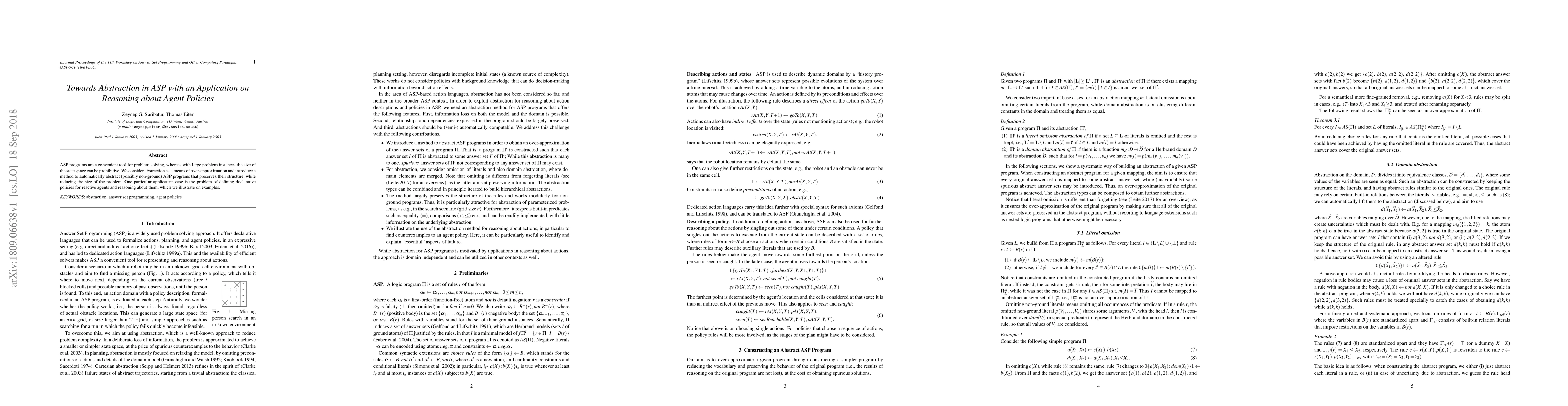 Researchers developed a method to abstract ASP programs, reducing state space size while preserving structure, with applications in agent policy reasoning.