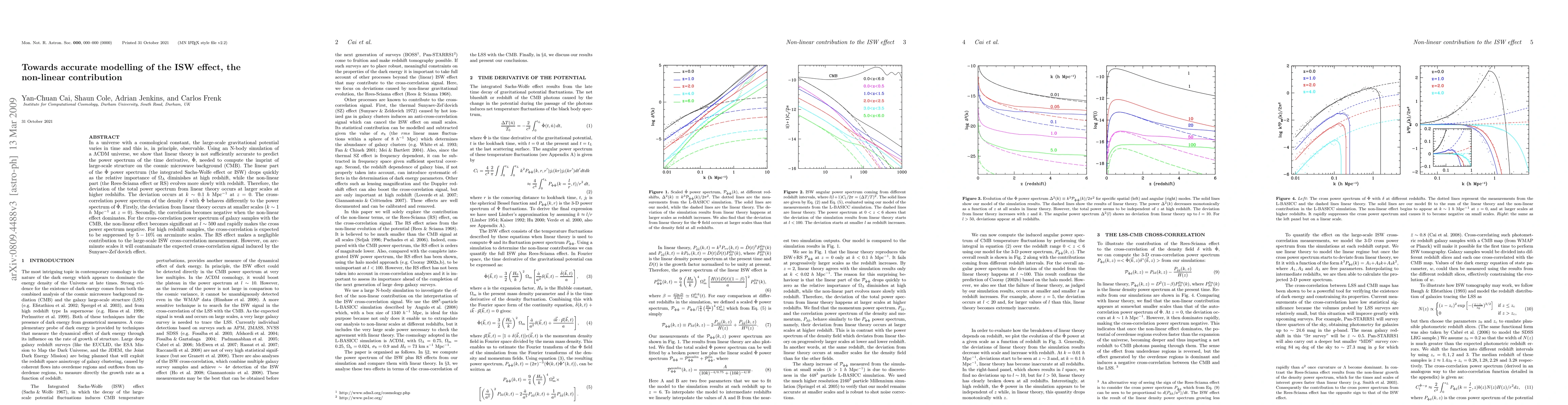 In a universe with a cosmological constant, the large-scale gravitational potential varies in time and this is, in principle, observable. Using an N-body simulation of a $\Lambda$CDM universe, we show that linear theory is not sufficiently accurate to predict the power spectrum of the time derivative, $\dot{\Phi}$, needed to compute the imprint of large-scale structure on the cosmic microwave background (CMB). The linear part of the $\dot{\Phi}$ power spectrum (the integrated Sachs-Wolfe effect or ISW) drops quickly as the relative importance of $\Omega_{\Lambda}$ diminishes at high redshift, while the non-linear part (the Rees-Sciama effect or RS) evolves more slowly with redshift. Therefore, the deviation of the total power spectrum from linear theory occurs at larger scales at higher redshifts. The deviation occurs at $k\sim 0.1 $ $h$ Mpc$^{-1}$ at $z=0$. The cross-correlation power spectrum of the density $\delta$ with $\dot{\Phi}$ behaves differently to the power spectrum of $\dot{\Phi}$. Firstly, the deviation from linear theory occurs at smaller scales ($k\sim 1 $ $h$ Mpc$^{-1}$ at $z=0$). Secondly, the correlation becomes negative when the non-linear effect dominates. For the cross-correlation power spectrum of galaxy samples with the CMB, the non-linear effect becomes significant at $l\sim 500$ and rapidly makes the cross power spectrum negative. For high redshift samples, the cross-correlation is expected to be suppressed by $5-10%$ on arcminute scales. The RS effect makes a negligible contribution to the large-scale ISW cross-correlation measurement. However, on arc-minute scales it will contaminate the expected cross-correlation signal induced by the Sunyaev-Zel'dovich effect.