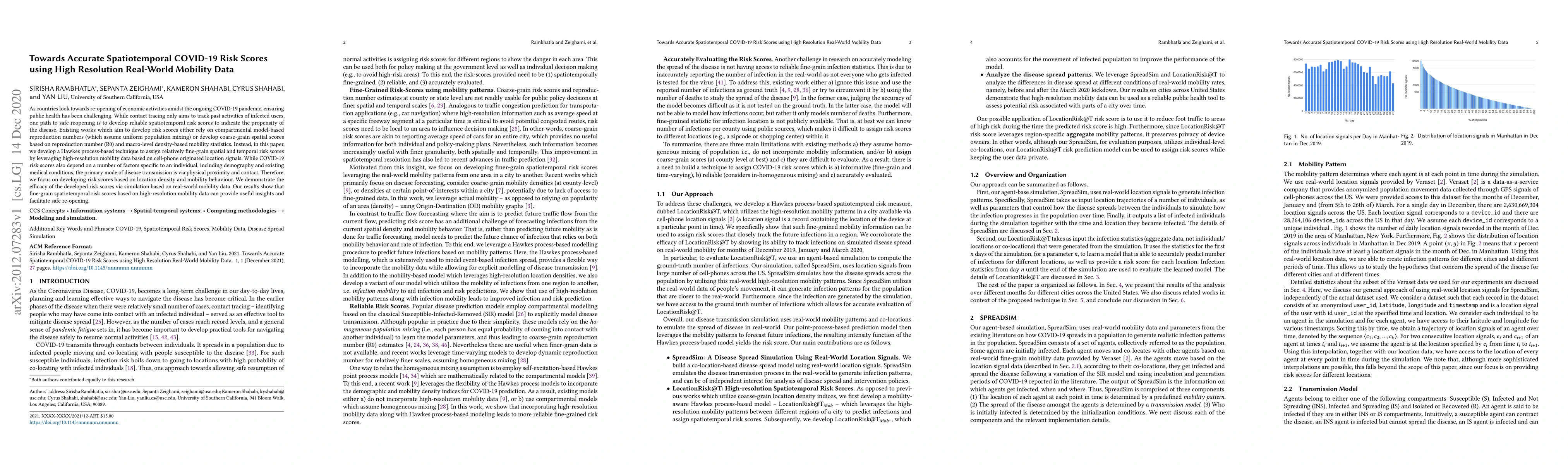 This paper develops a Hawkes process-based technique to create fine-grain spatiotemporal COVID-19 risk scores using high-resolution real-world mobility data from cell-phone location signals. The proposed method aims to provide more accurate risk assessments compared to existing coarse-grain approaches, facilitating safer economic reopening strategies.