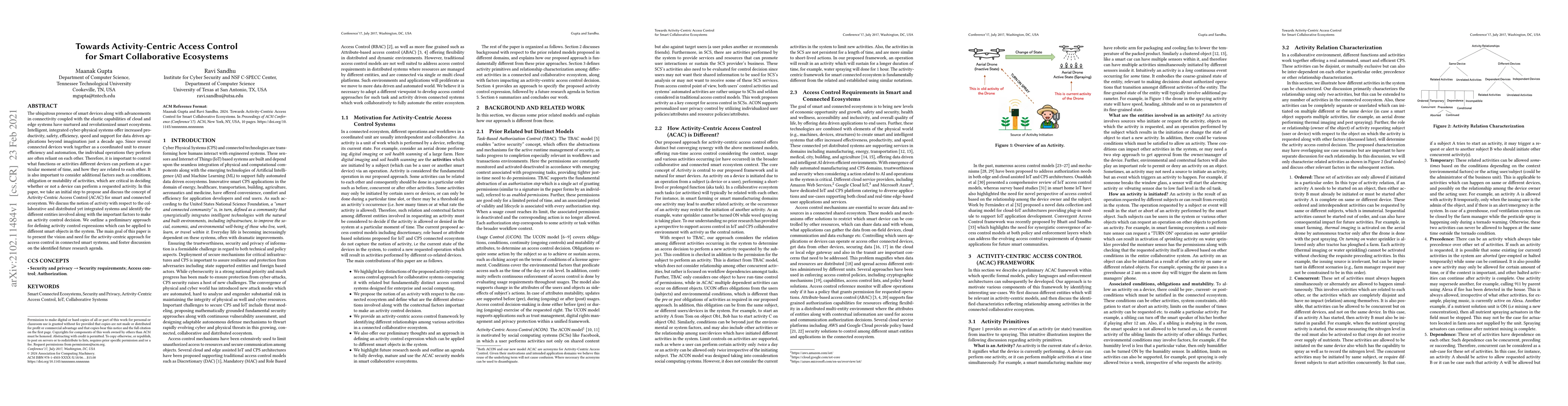 This paper proposes Activity-Centric Access Control (ACAC) for smart ecosystems, enabling control over device operations based on collaborative activities and conditions. It outlines a preliminary approach to defining activity control expressions, aiming to foster discussion on future research agenda.