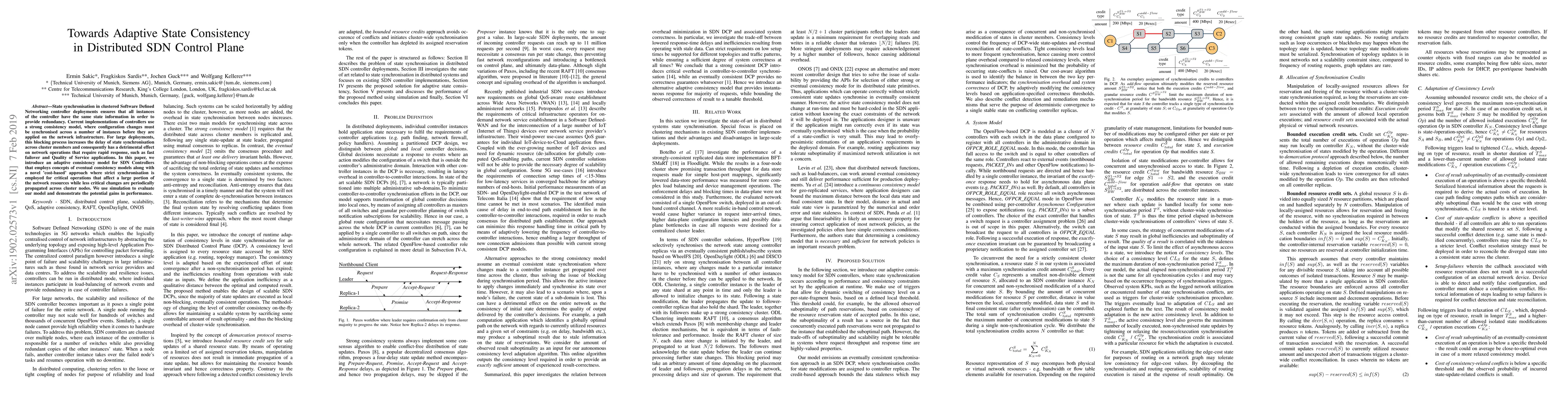 State synchronisation in clustered Software Defined Networking controller deployments ensures that all instances of the controller have the same state information in order to provide redundancy. Current implementations of controllers use a strong consistency model, where configuration changes must be synchronised across a number of instances before they are applied on the network infrastructure. For large deployments, this blocking process increases the delay of state synchronisation across cluster members and consequently has a detrimental effect on network operations that require rapid response, such as fast failover and Quality of Service applications. In this paper, we introduce an adaptive consistency model for SDN Controllers that employs concepts of eventual consistency models along with a novel `cost-based' approach where strict synchronisation is employed for critical operations that affect a large portion of the network resources while less critical changes are periodically propagated across cluster nodes. We use simulation to evaluate our model and demonstrate the potential gains in performance.