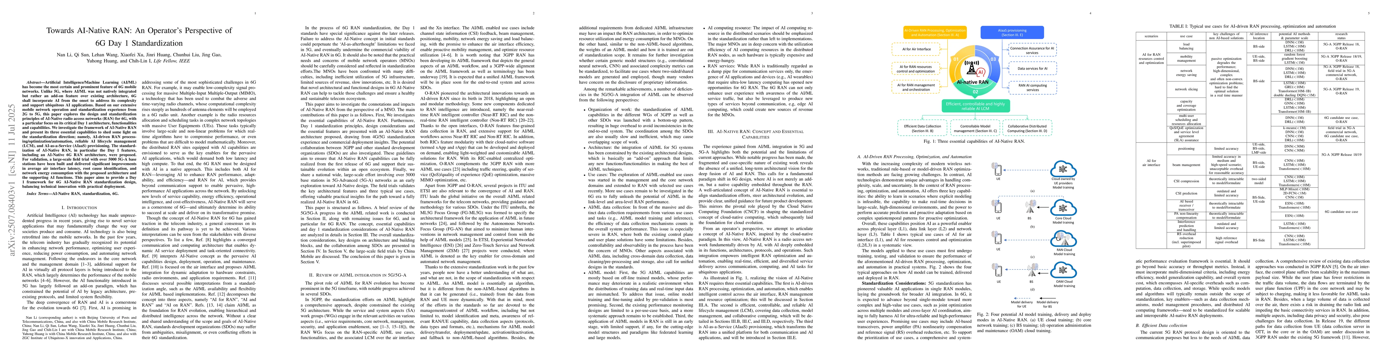 Artificial Intelligence/Machine Learning (AI/ML) has become the most certain and prominent feature of 6G mobile networks. Unlike 5G, where AI/ML was not natively integrated but rather an add-on feature over existing architecture, 6G shall incorporate AI from the onset to address its complexity and support ubiquitous AI applications. Based on our extensive mobile network operation and standardization experience from 2G to 5G, this paper explores the design and standardization principles of AI-Native radio access networks (RAN) for 6G, with a particular focus on its critical Day 1 architecture, functionalities and capabilities. We investigate the framework of AI-Native RAN and present its three essential capabilities to shed some light on the standardization direction; namely, AI-driven RAN processing/optimization/automation, reliable AI lifecycle management (LCM), and AI-as-a-Service (AIaaS) provisioning. The standardization of AI-Native RAN, in particular the Day 1 features, including an AI-Native 6G RAN architecture, were proposed. For validation, a large-scale field trial with over 5000 5G-A base stations have been built and delivered significant improvements in average air interface latency, root cause identification, and network energy consumption with the proposed architecture and the supporting AI functions. This paper aims to provide a Day 1 framework for 6G AI-Native RAN standardization design, balancing technical innovation with practical deployment.