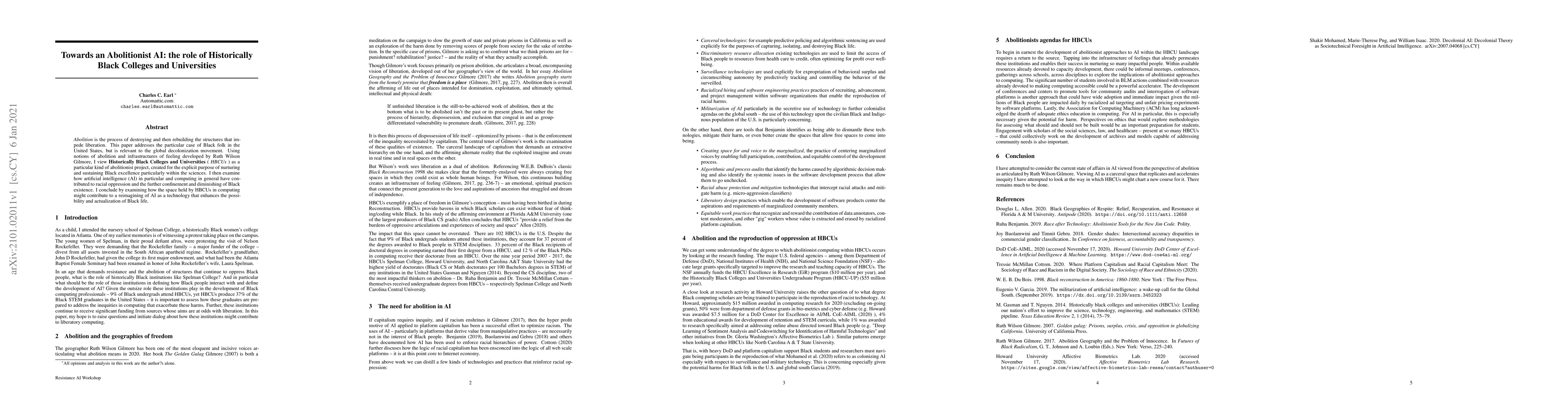 This paper explores the role of Historically Black Colleges and Universities (HBCUs) as abolitionist projects aimed at nurturing Black excellence, particularly in the sciences. It critiques the racial oppression perpetuated by AI and computing, and proposes that HBCUs could lead to a reimagined AI that enhances Black life.