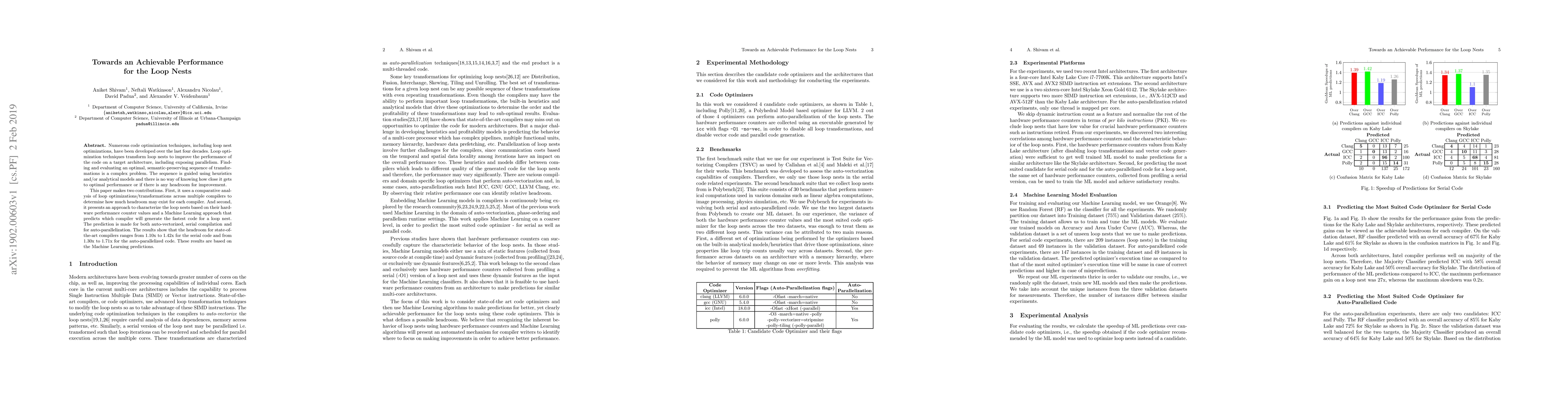 This paper analyzes loop nest optimizations across multiple compilers to identify performance headroom and proposes a Machine Learning model to predict the best compiler for generating fast code, showing potential performance improvements ranging from 1.10x to 1.71x.