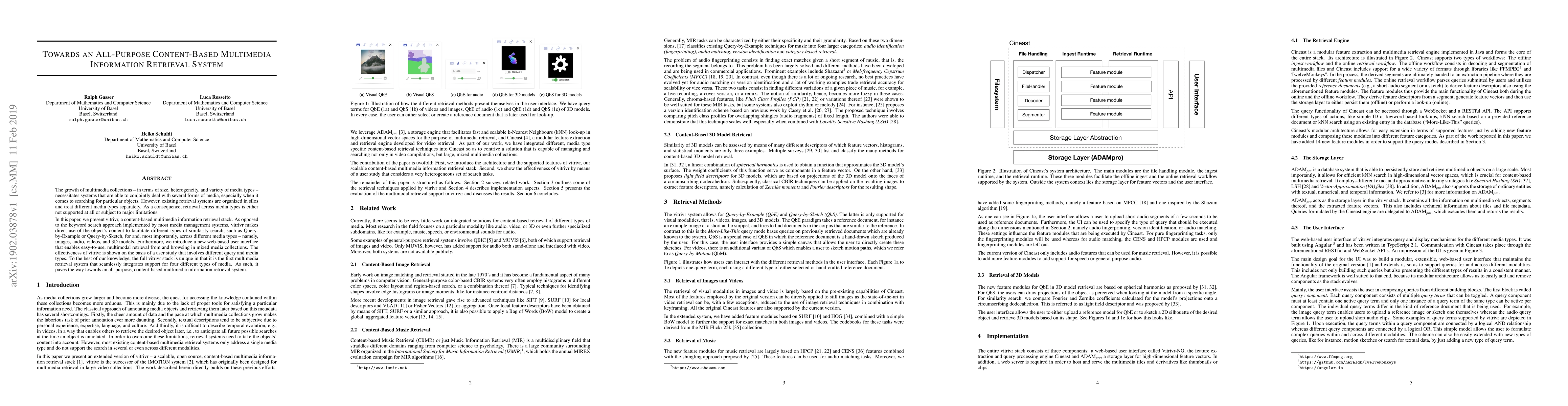 This paper introduces vitrivr, a comprehensive content-based multimedia retrieval system designed to seamlessly integrate and search across various media types, including images, audio, videos, and 3D models. It features a web-based interface for multimodal retrieval and demonstrates its effectiveness through a user study.